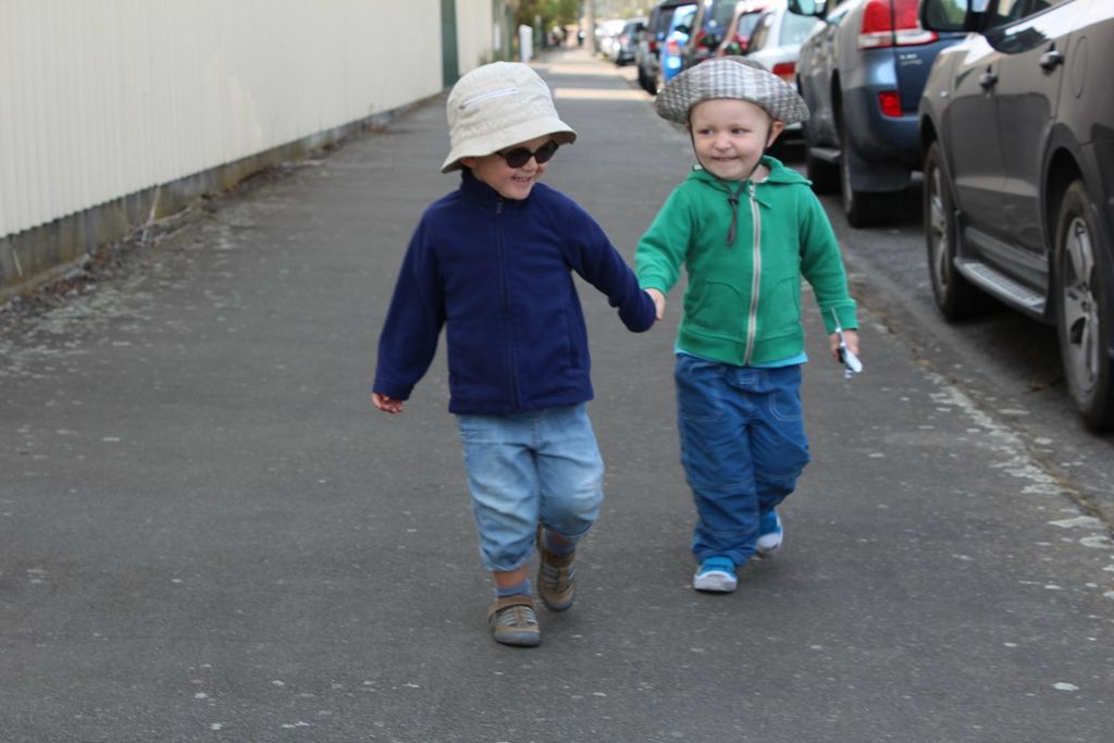 45. ... et comment mieux motiver les enfants a marcher qu'en se donnant la main?