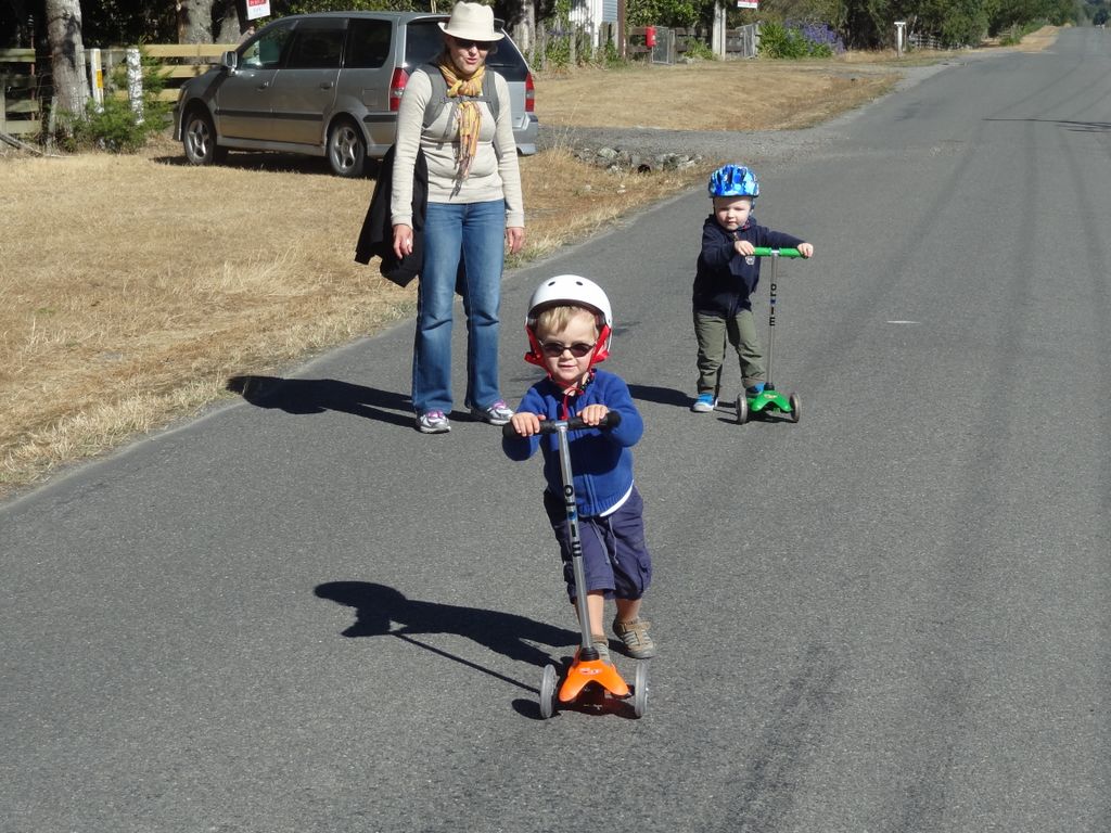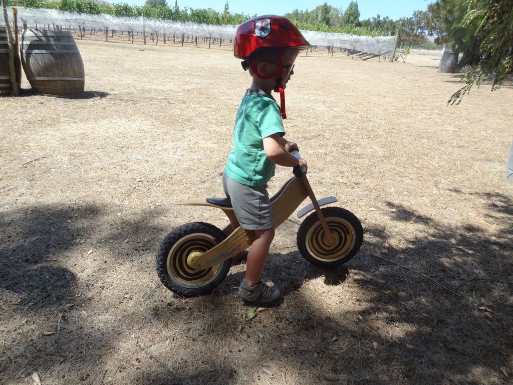 76. C'est l'occasion pour Adan de s'essayer au "push-bike" qu'il ne maitrise pas encore bien. Vive la bonne vieille trotinette!