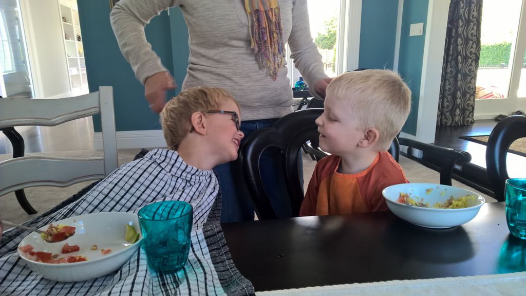 38. Les enfants sont en train de diner, et je prepare le barbecue ... CQFD