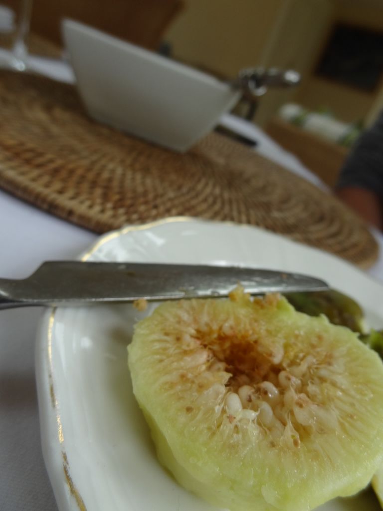 10. ... par un dejeuner leger. Ici une figue trouvee dans le jardin que Seb n'a pas resiste a prendre!