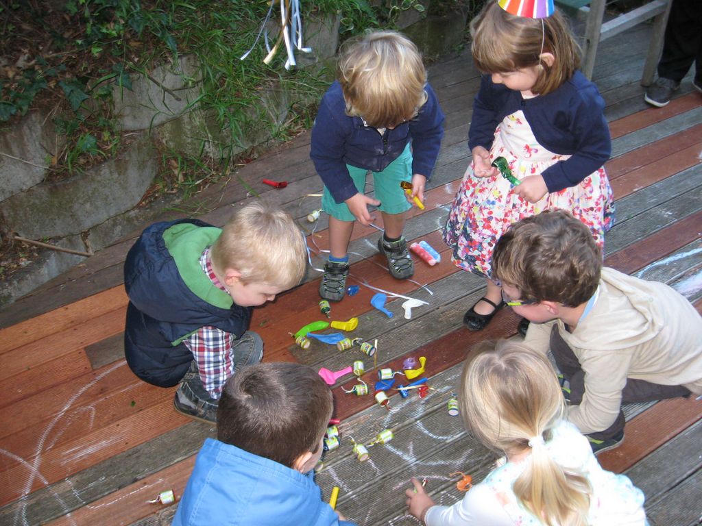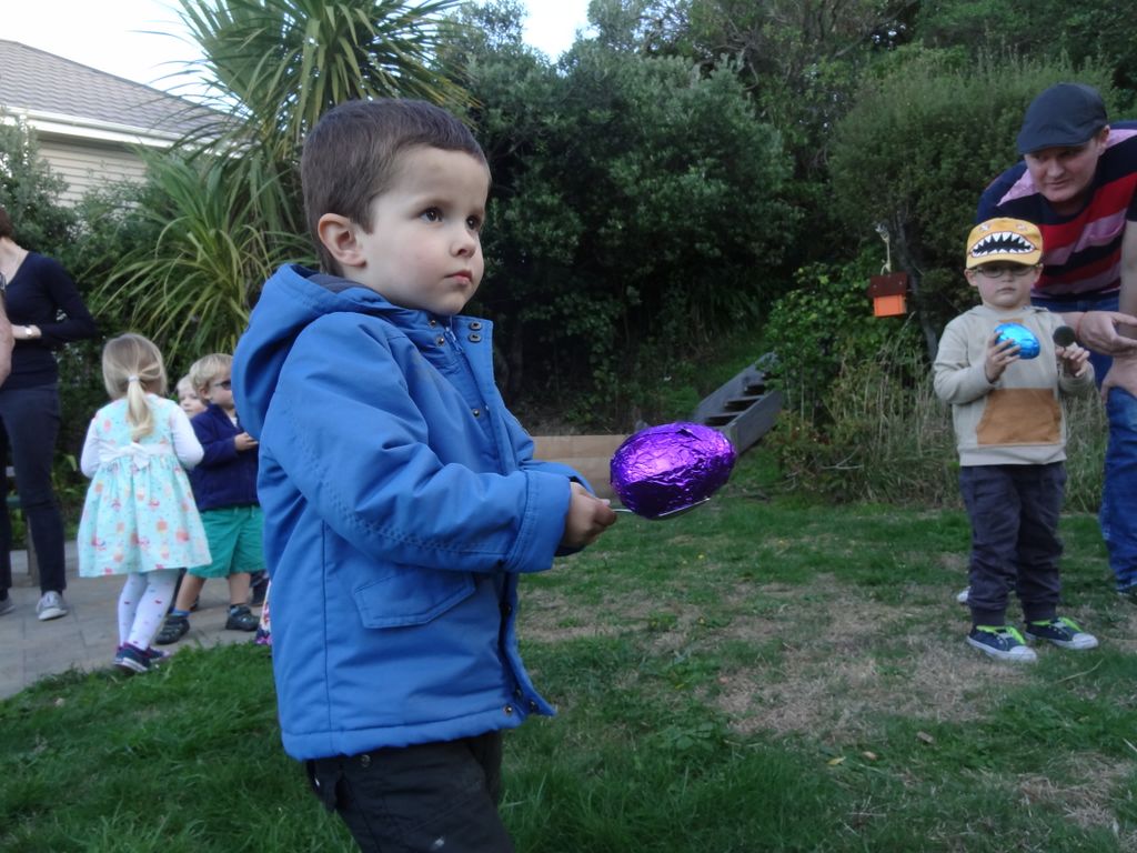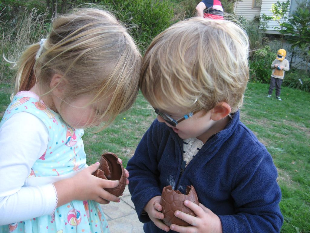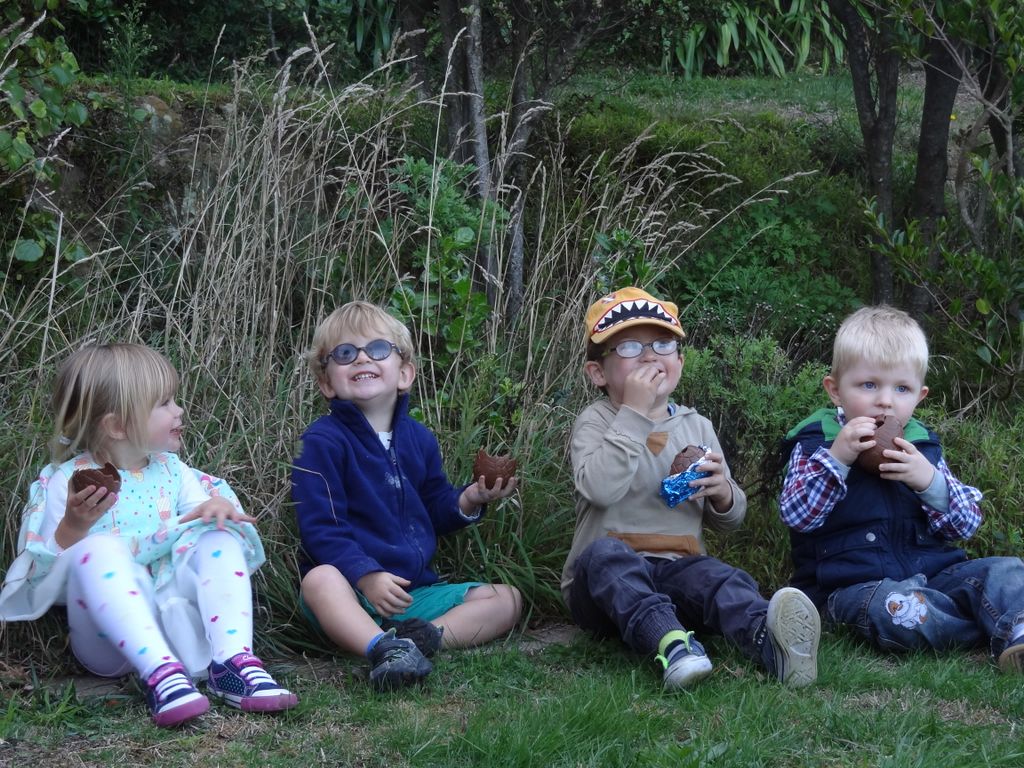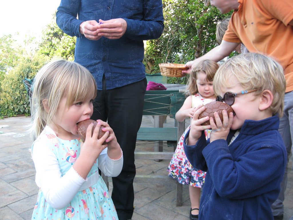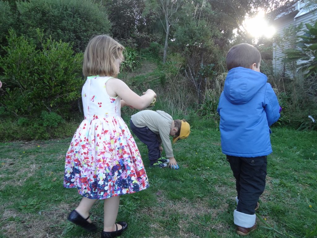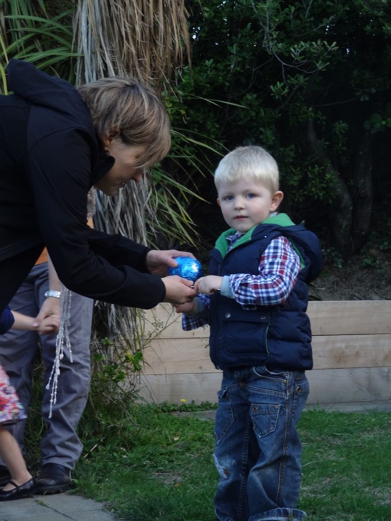 8. Puis tous les enfants sont arrives, et on a commence par une chasse au tresor. Tous les enfants ont aide a trouver un petit saut a chocolat pour les autres.