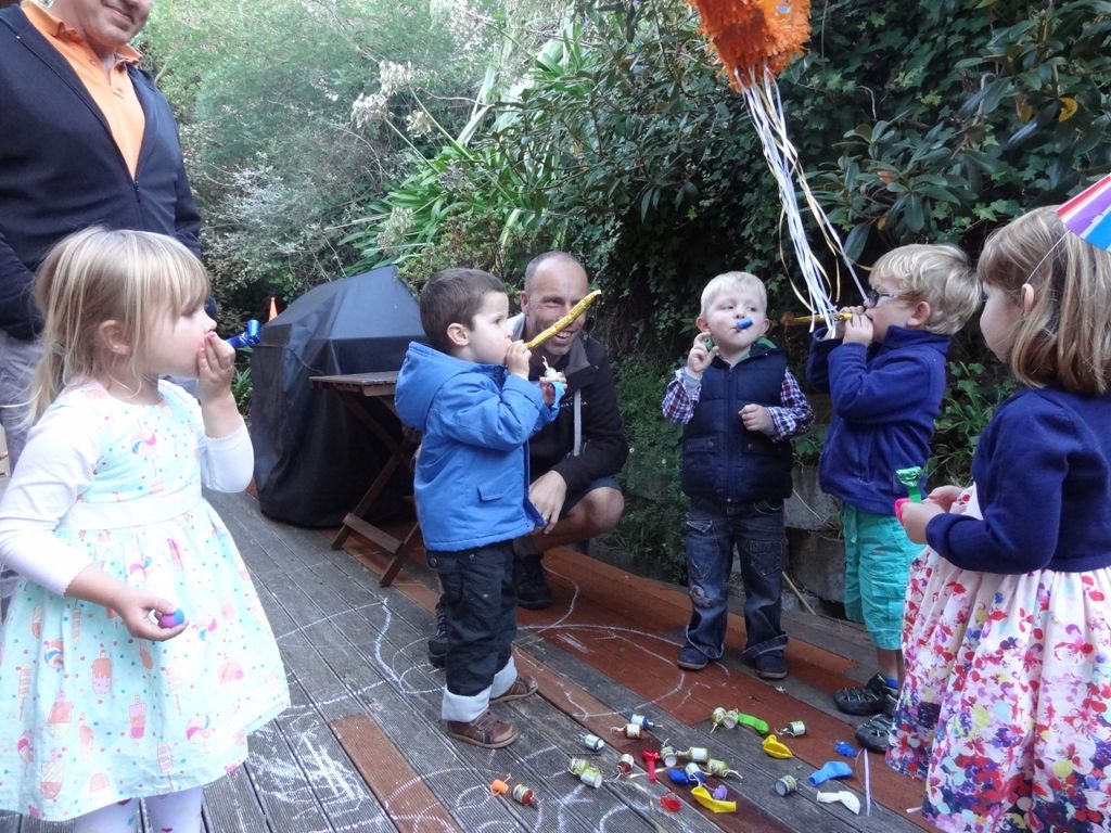 Pour les 3 ans d'Adan, nous avons organise une petite fete avec un nombre restreint d'amis. Deux heures un dimanche apres-midi pour permettre a chacun de profiter des uns et des autres. Adan etait aux anges!