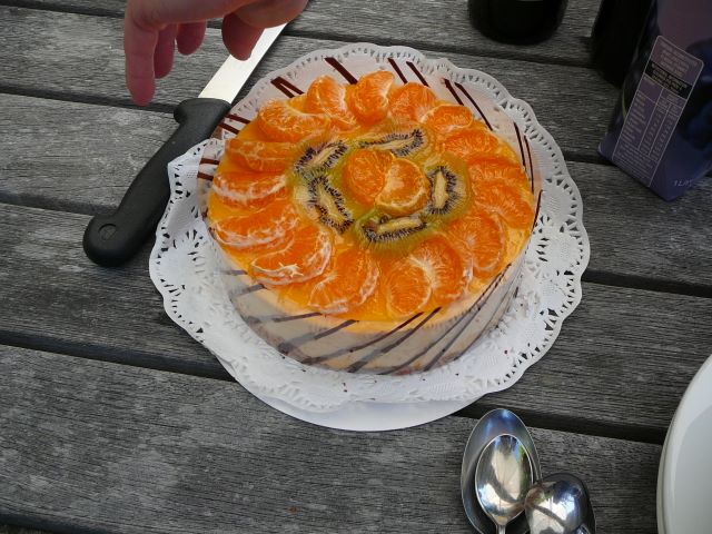 49. Samedi 14. Aurore et Christophe vont randonner à Eastbourne, de l'autre côté de la baie. On les emmène en bateau, et pour nous remercier, c'est tarte au citron!