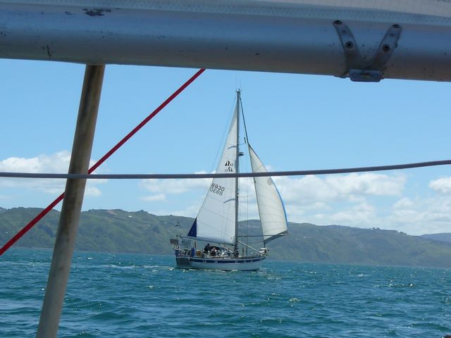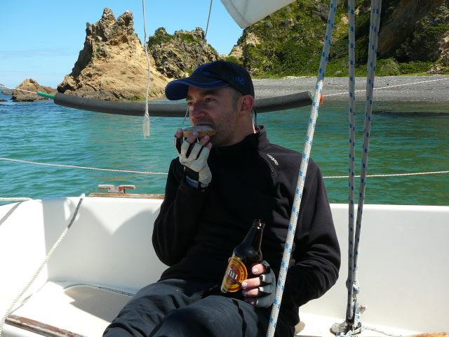38. Puis nous repartons, en dehors de la baie. Les "jeunes" ont envie de naviguer, donc pour les "vieux", c'est repos!