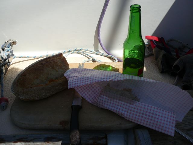 37. ... où nous prenons un pique nique. Ici, le bateau est amarré sur le ponton, en bas de chez nous. Une première!