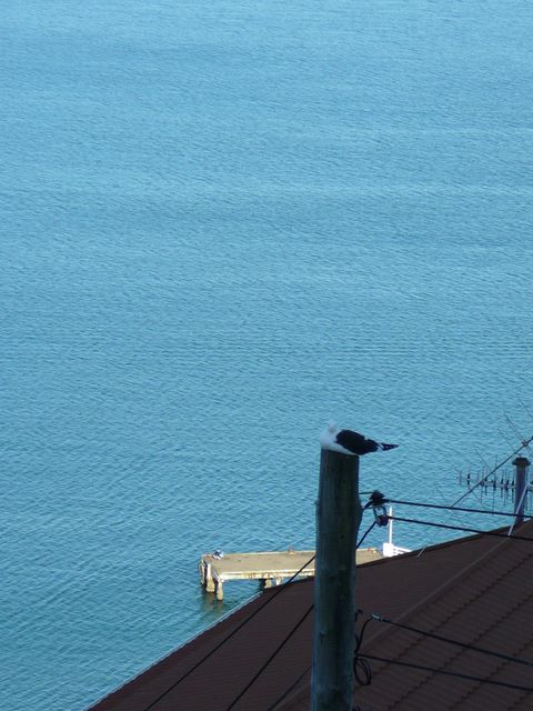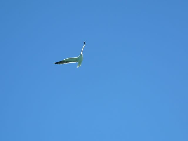 41. Le soir, un goëland se repose sur un poteau surplombant le ponton où nous étions amarré ce midi.