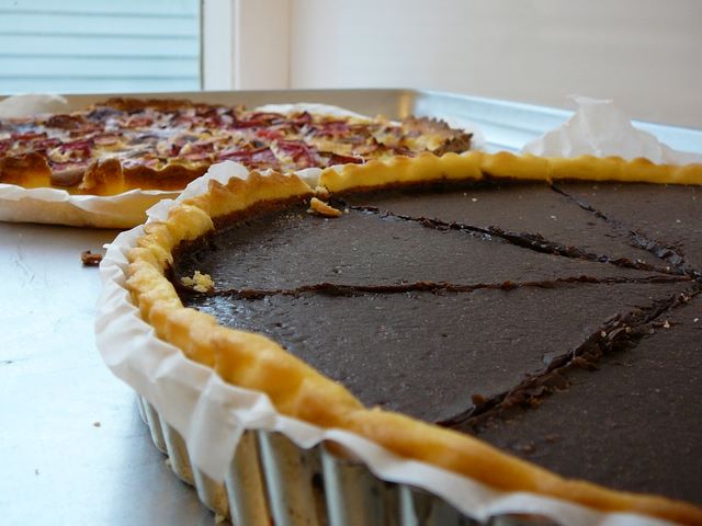 44. Ce soir, ce sera poisson, boeuf ou aubergine, avec tarte rhubarbe ou chocolat pour le dessert.