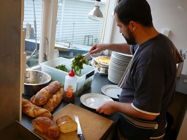 43. ... au club de voile de Evans Bay. Nous cuisinons chez nous et ramenons tout le soir même pour les membres du club.