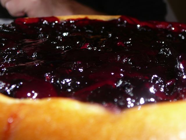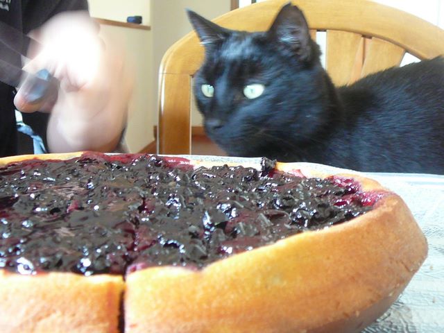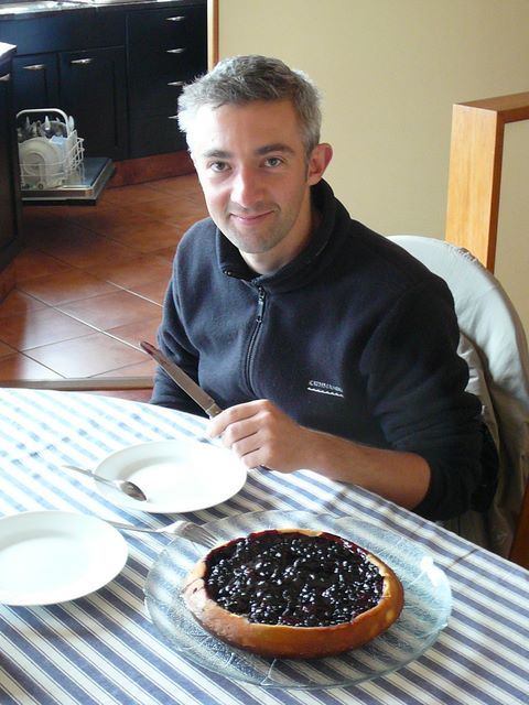 59. Plus tard, Seb a cuisiné un clafoutis myrtilles/chocolat.