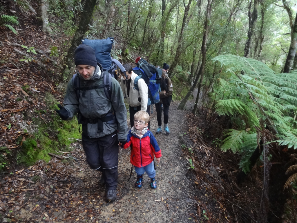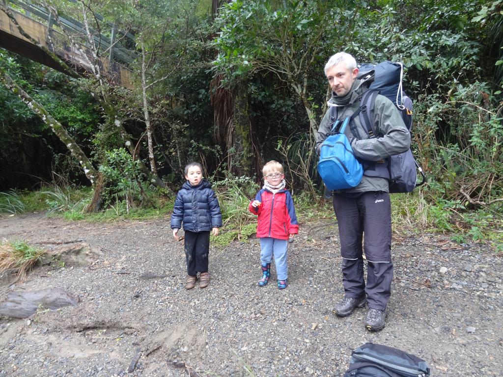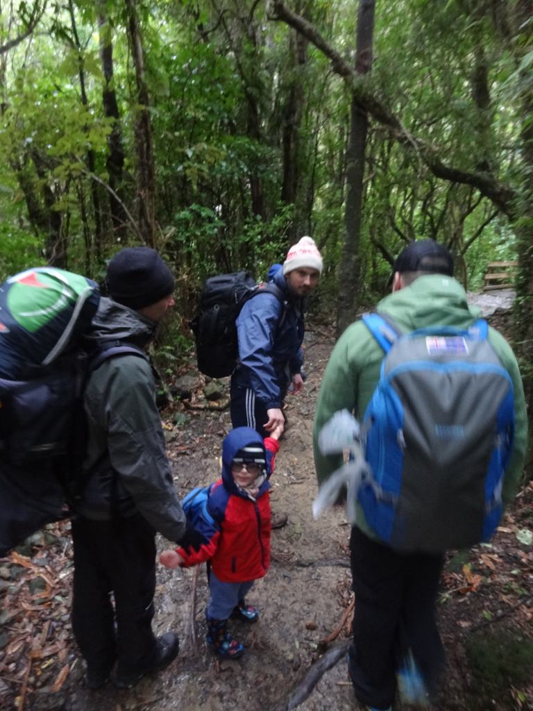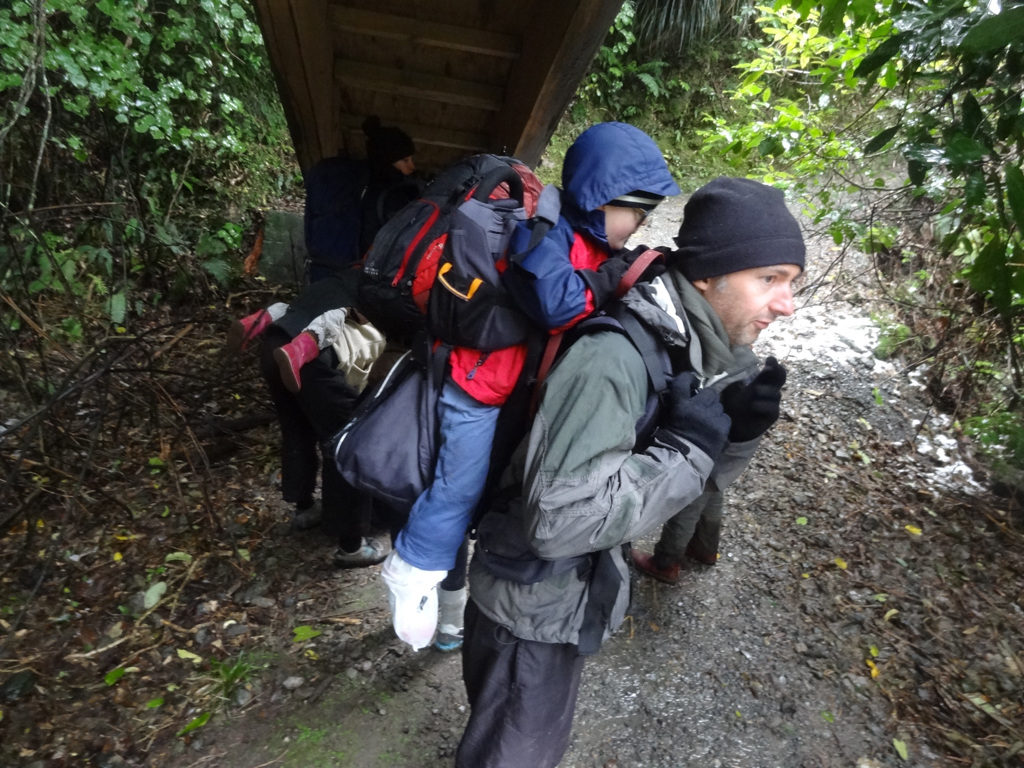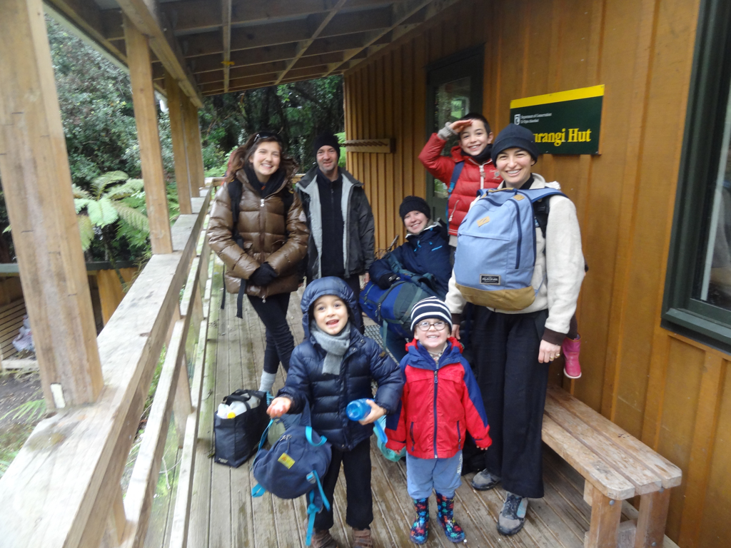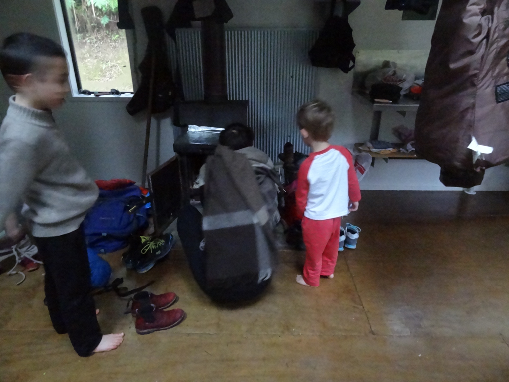 Accompagnés de Ronan, Victor, de Marie Loic et sa tribu, nous sommes allés passer une nuit à l'Haurangi Hut, dans le Rimutaka. La randonnée de quelques heures aller et autant retour, devait être saupoudrée de quelques averses, mais nous offrit au final ... quelques eclaircies entre les trombes d'eau, la grêle et la neige! Qu'importe, car une fois au refuge, le poële et la présence de nos amis ont réussi à nous réchauffer!