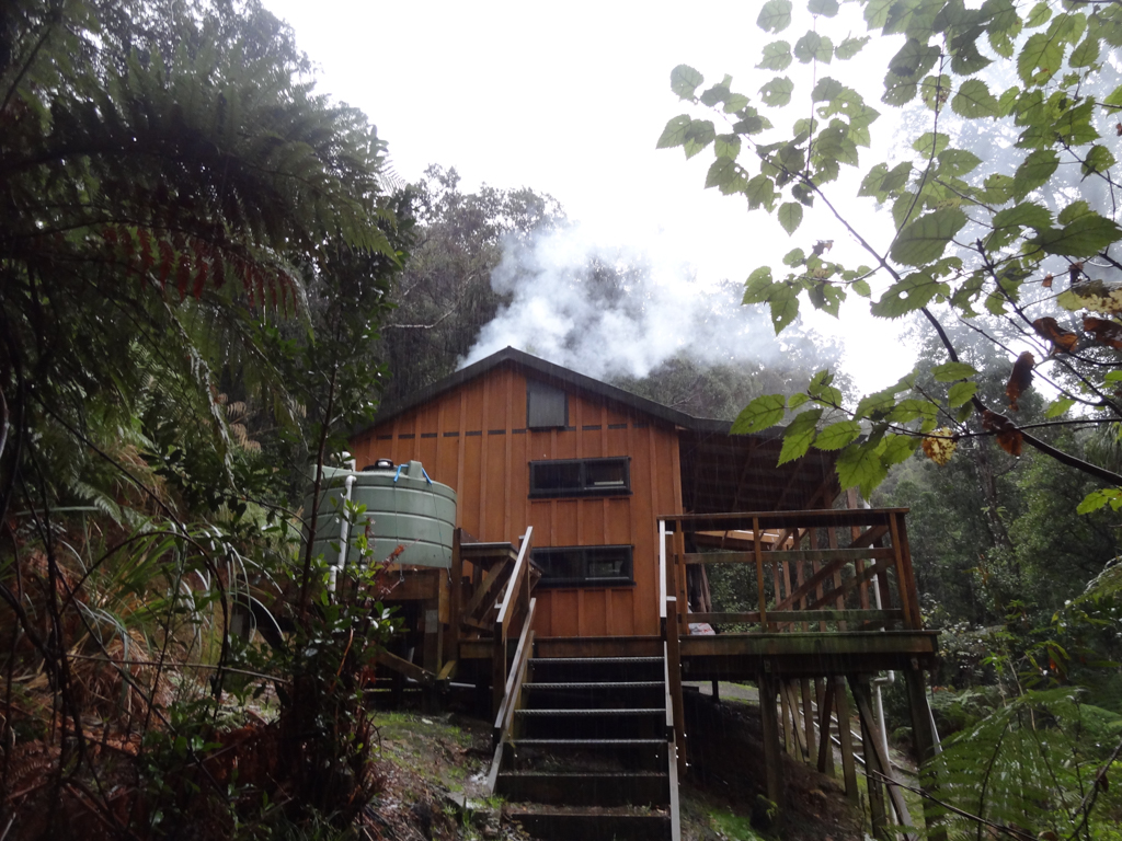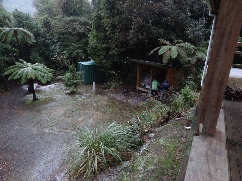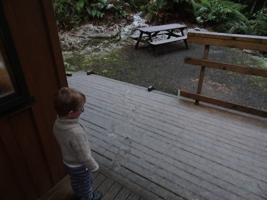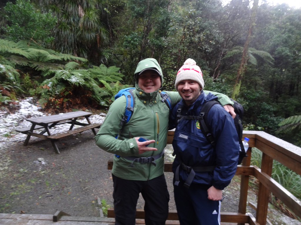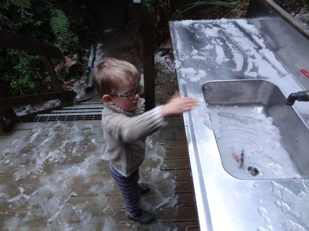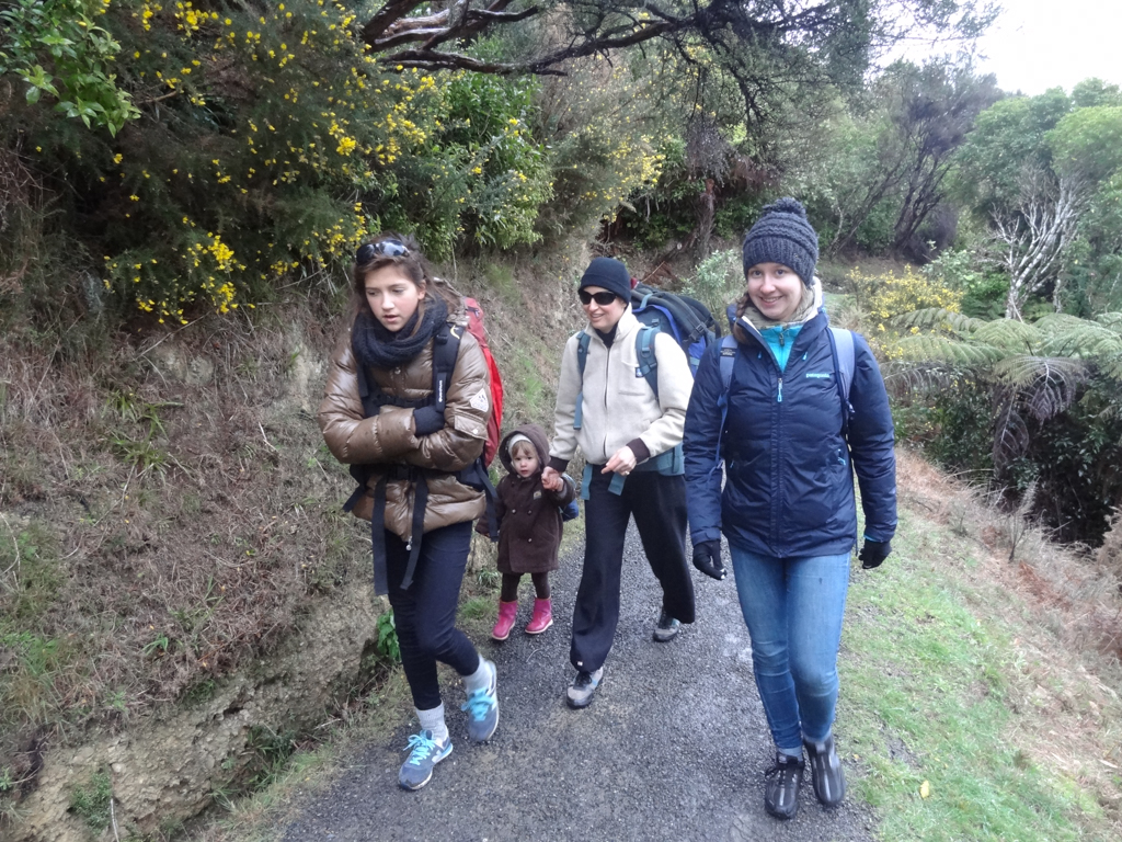 Accompagnés de Ronan, Victor, de Marie Loic et sa tribu, nous sommes allés passer une nuit à l'Haurangi Hut, dans le Rimutaka. La randonnée de quelques heures aller et autant retour, devait être saupoudrée de quelques averses, mais nous offrit au final ... quelques eclaircies entre les trombes d'eau, la grêle et la neige! Qu'importe, car une fois au refuge, le poële et la présence de nos amis ont réussi à nous réchauffer!
