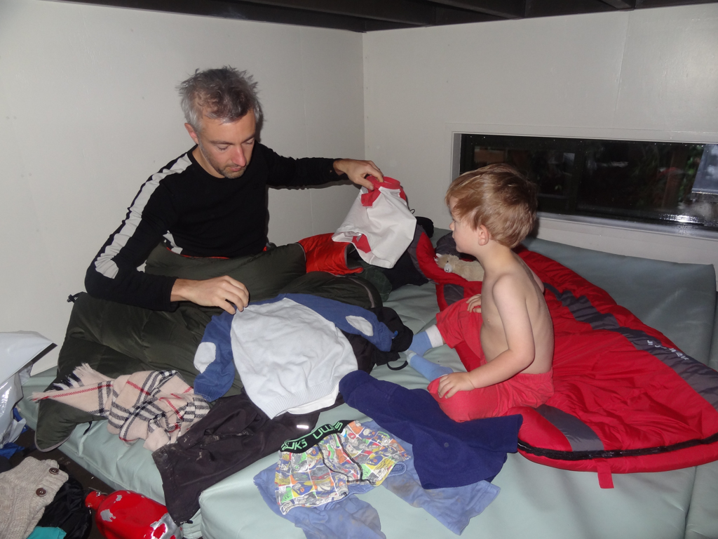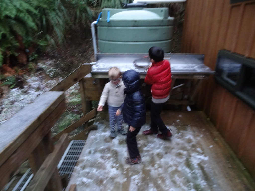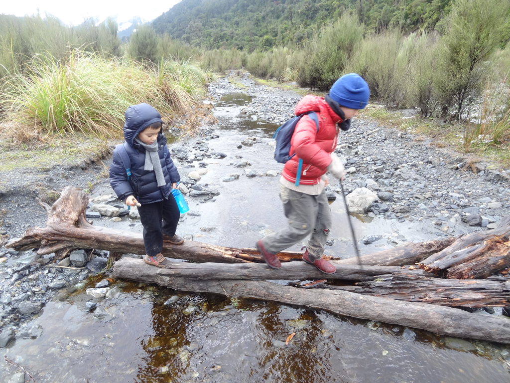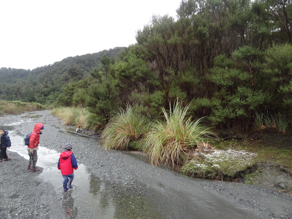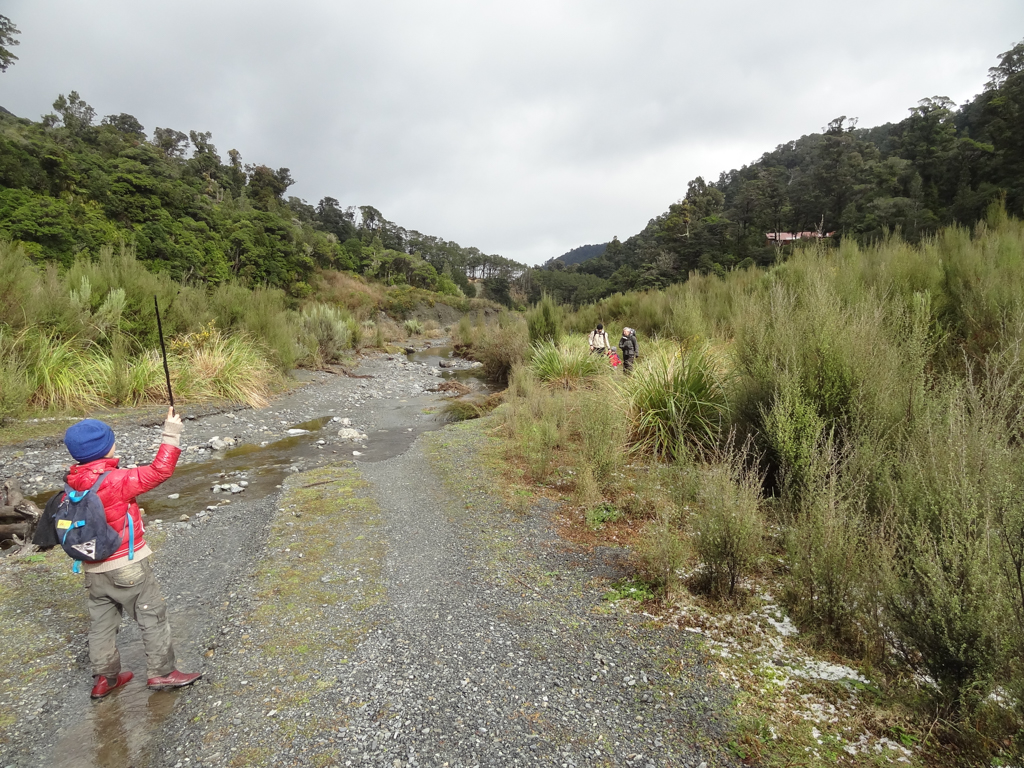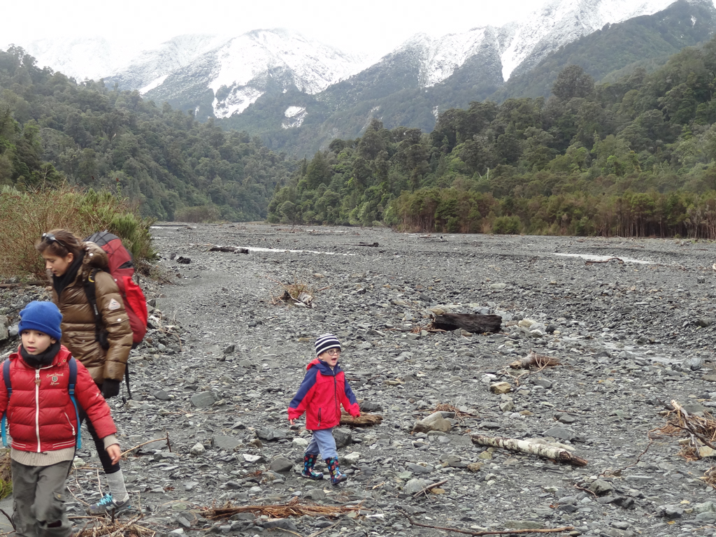 Accompagnés de Ronan, Victor, de Marie Loic et sa tribu, nous sommes allés passer une nuit à l'Haurangi Hut, dans le Rimutaka. La randonnée de quelques heures aller et autant retour, devait être saupoudrée de quelques averses, mais nous offrit au final ... quelques eclaircies entre les trombes d'eau, la grêle et la neige! Qu'importe, car une fois au refuge, le poële et la présence de nos amis ont réussi à nous réchauffer!
