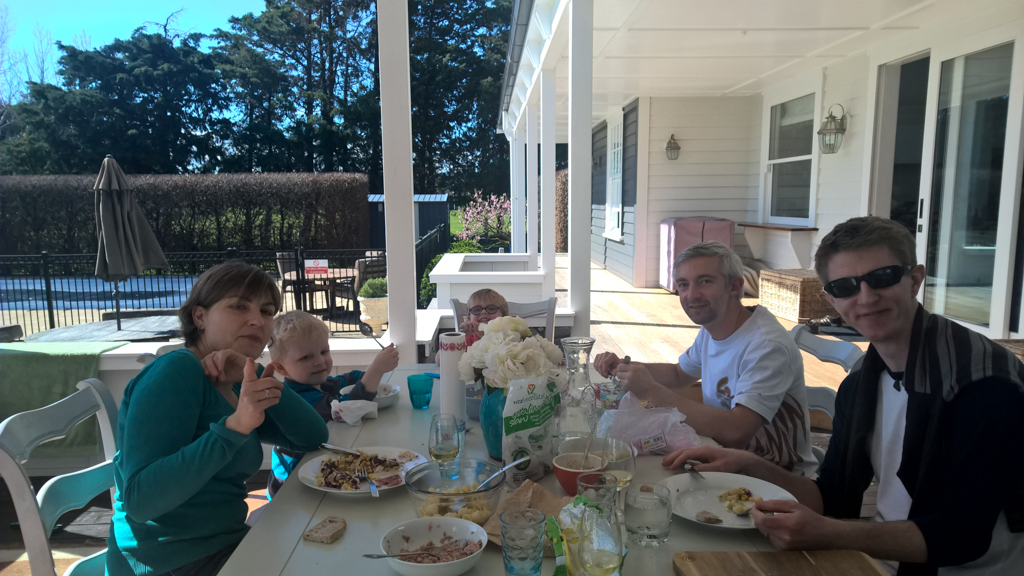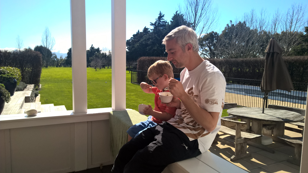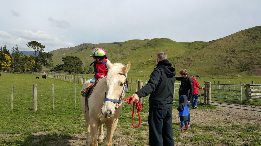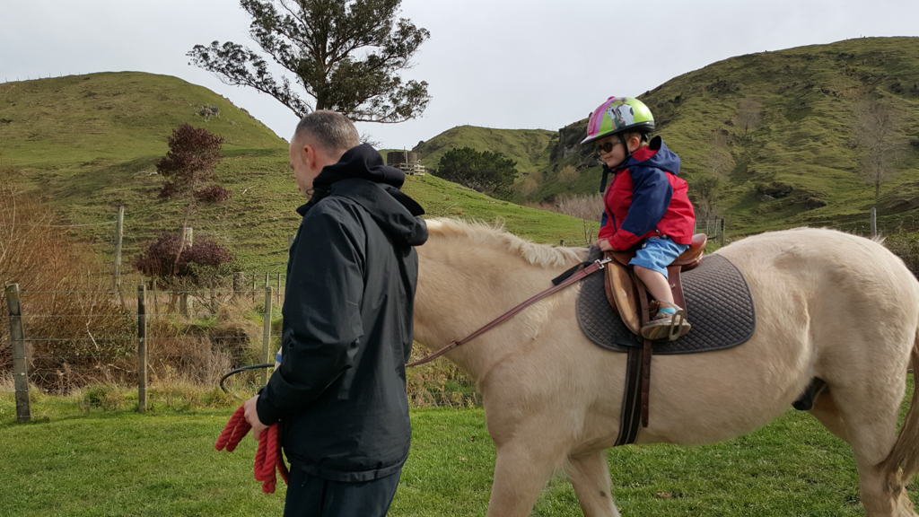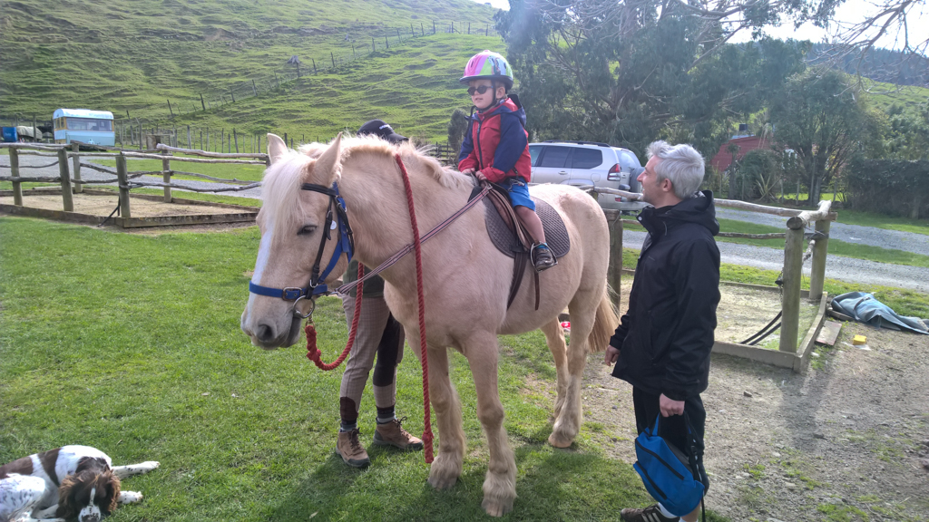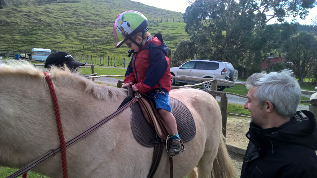 Petit weekend hivernal à Martinbourough. Chris et Aurore devaient être là, mais enfant malade etc etc .... Du coup, nous nous sommes retrouvés avec Jamie, Amandine et Pablo. Adan en a profité pour monter à cheval pour la première fois!
