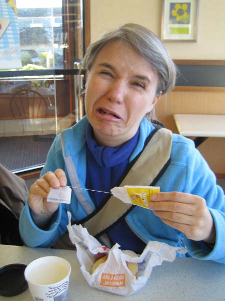 25. A cette heure matinale, rien n'est ouvert sauf le Mc Do!! D'où la grimace!