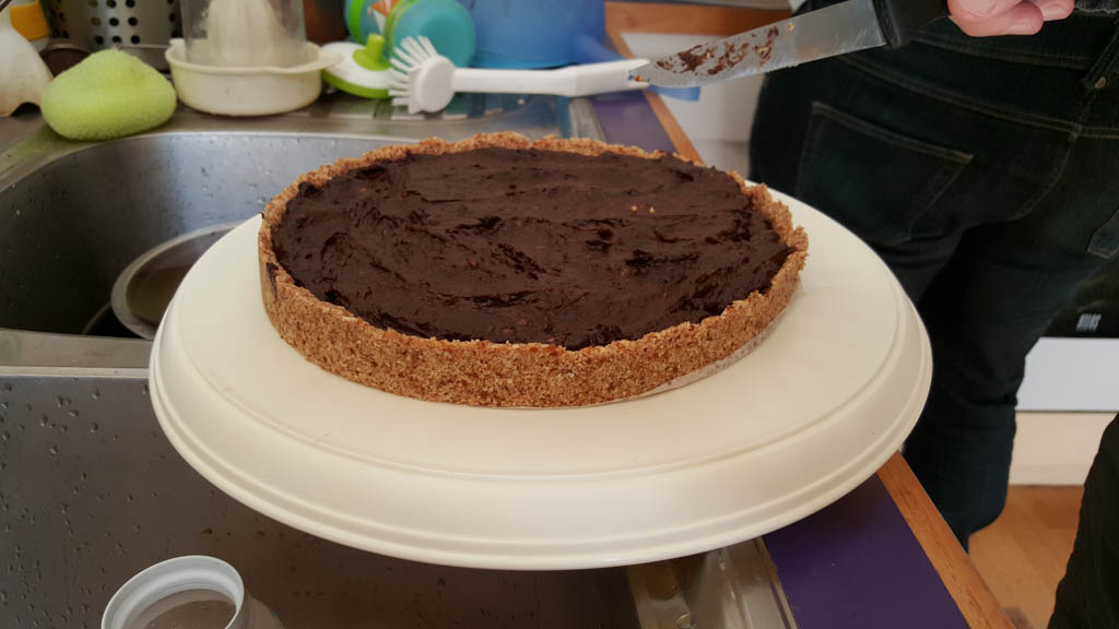 26. Ca, c'est une tarte faite maison par les Papas et Adan pour amener chez Oliver dans l'après midi. Recette trouvée par Amandine, sans cuisson, sans oeuf, sans farine et sans lait!!!! Mais avec des avocats, des dates, de la noix de coco. En fait, c'est pas pour dire mais c'est délicieux!