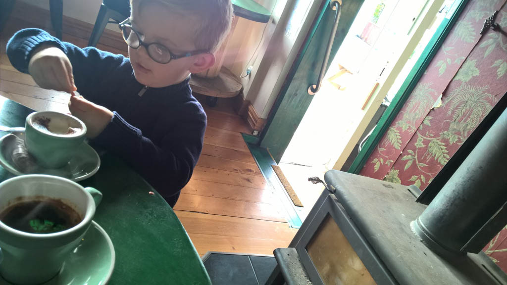25. Aujourd'hui, j'emmène Adan faire des courses. Puis, avant de remonter à la maison, lui et moi on se prend un "café" à Gipsy Kitchen, à côté de la cheminée!