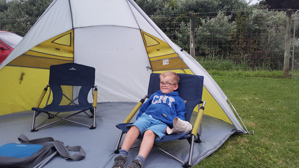 12. Alors pour le moment, on reste au camping, un peu plus abrité que la plage.