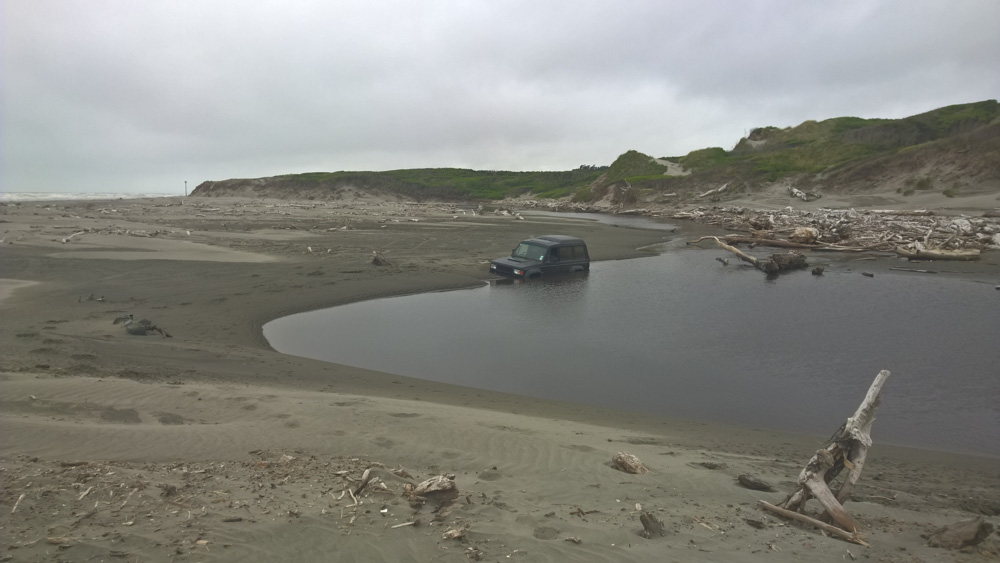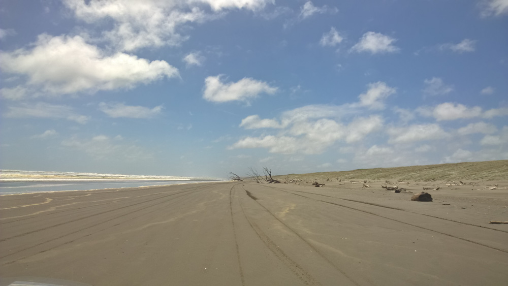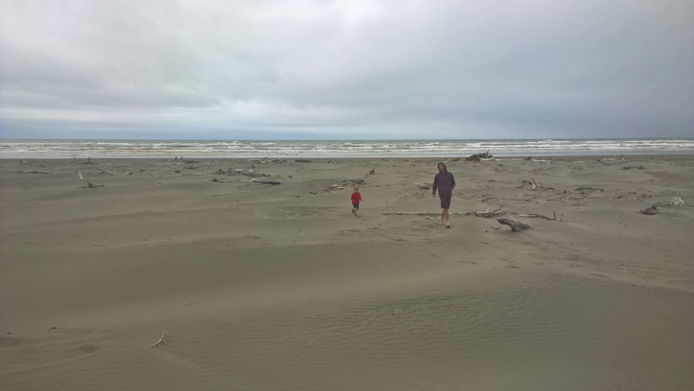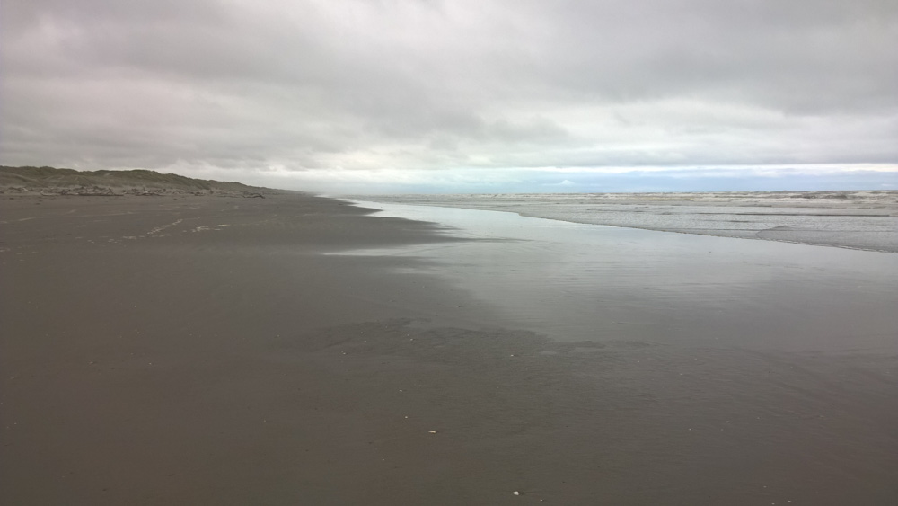 35. La plage d'Himatangi. Le vent est tombé, mais maintenant, c'est un peu couvert.
