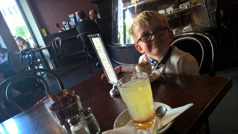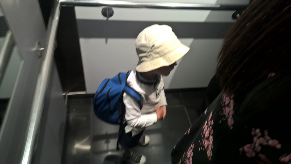 La maternelle, c'est fini pour 2015. Il reste une demi journée de travail pour les Papas, alors pourquoi ne pas aller tous ensemble en ville? Adan était aux anges et a bien préparé son sac pour profiter à fond de la visite de ce lieu mythique!