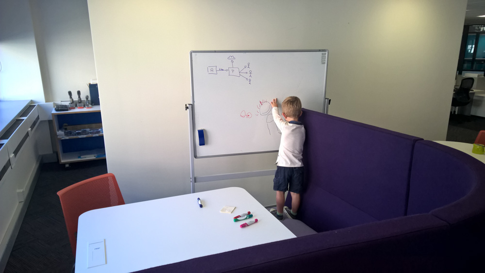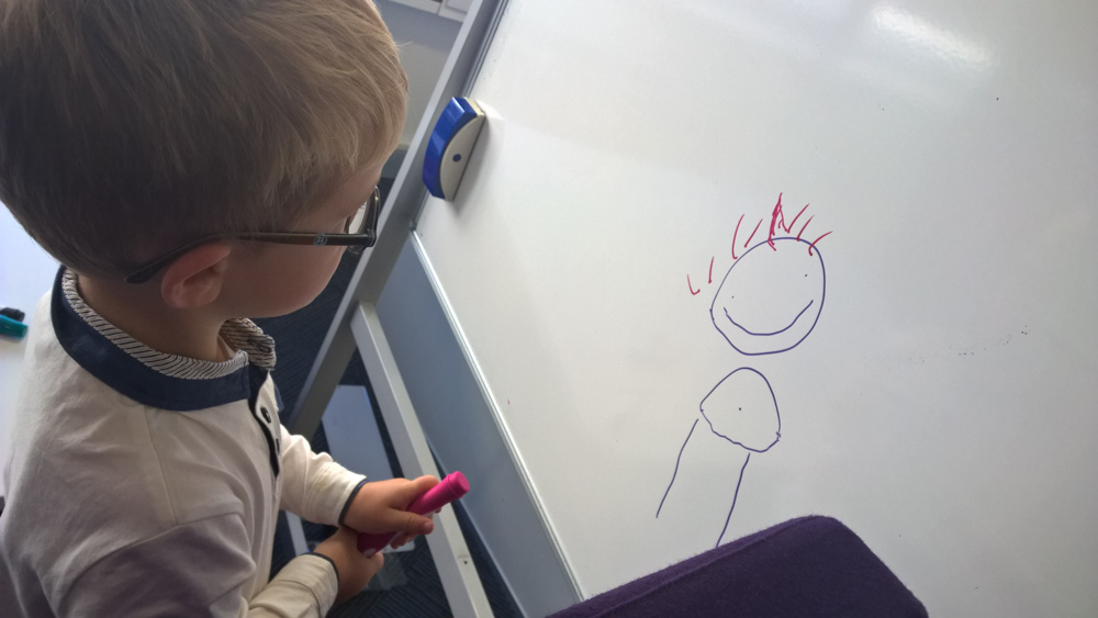 4. Au travail, il y a plein de choses super, comme des tableaux pour dessiner ...