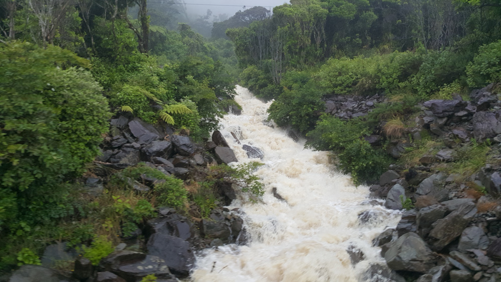 173. Il pleut des seaux, les rivières sont en crues, et la mer déchaînée.