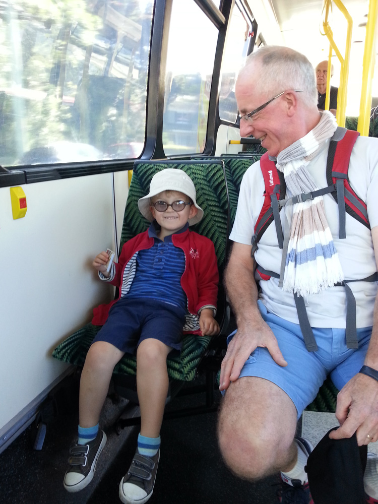 57. 19 Janvier. Dans le bus pour aller en ville, manger avec les Papas.