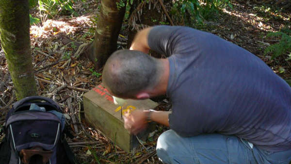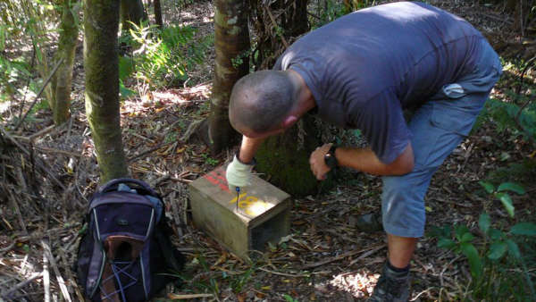 13. Dimanche 25 février. Premier relevé de pièges pour le Kiwi Trust. Il faut ouvrir les pièges, les vérifier, puis les refermer