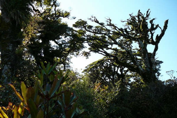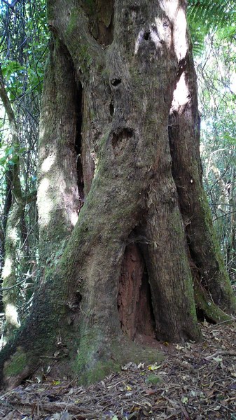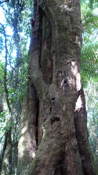 25. Un "rata". Cette espèce de rata (un "northern rata") grandit avec un tronc. Celui ci, arrivé à taille adulte, fait pousser ses graines à son sommet. Les troncs "auxiliaires" ...