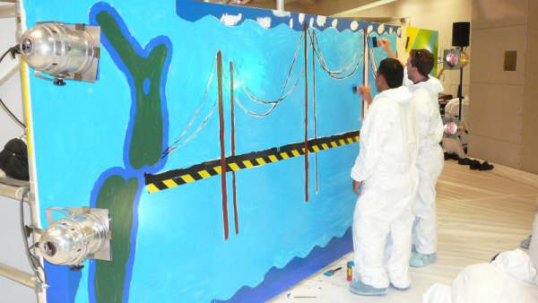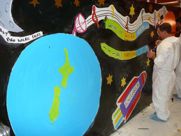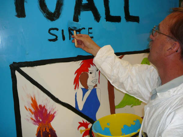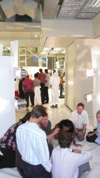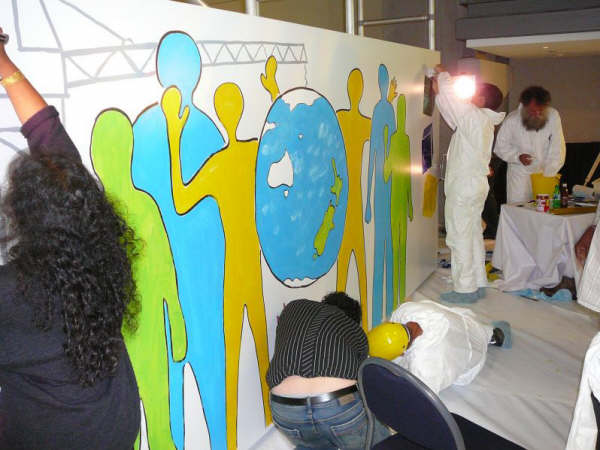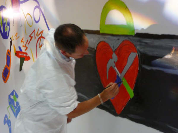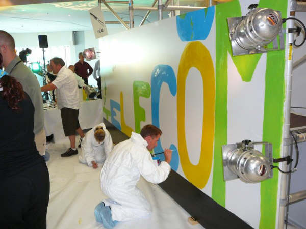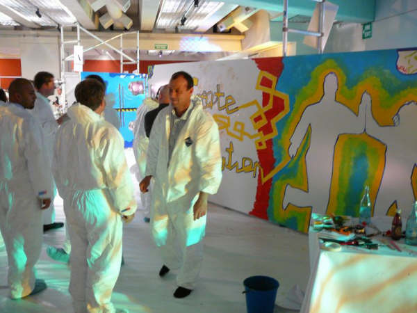 5. ... et chaque equipe (il y en a une dizaine) recoit du materiel et un "mur" blanc sur lequel exprimer sa creativite ...