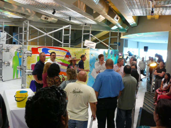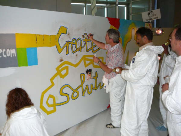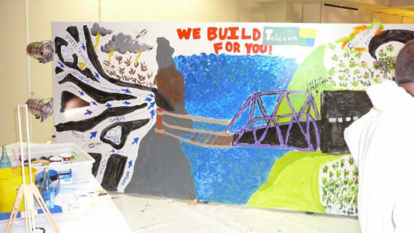 7. ... sur le theme "Telecom services". Ci dessus, l'oeuvre d'art de mon equipe, apres 2h30 de design, de peinture, et de test ...