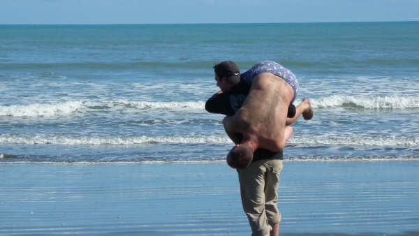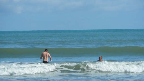 12. Seb a pris la photo quand Laurent m'emmene vers les vagues, mais pas celle ou MOI j'emmene Laurent dans l'eau!!