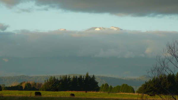 25. En arrivant sur Ohakune, on apercoit un des volcans de la chaine, le Ruhapehu