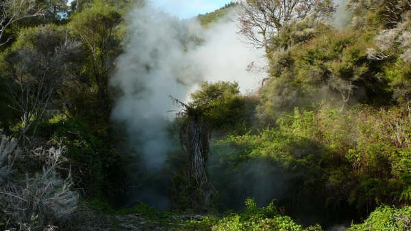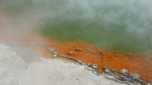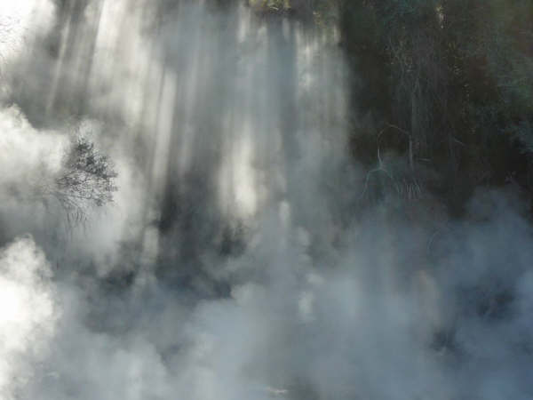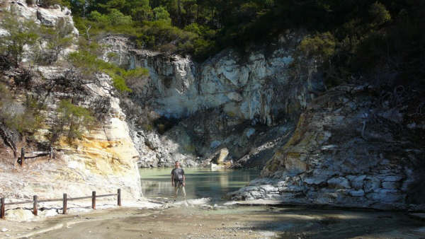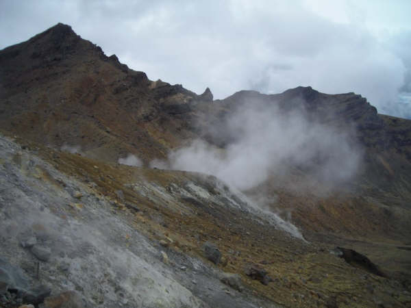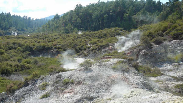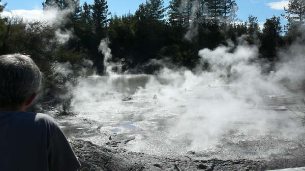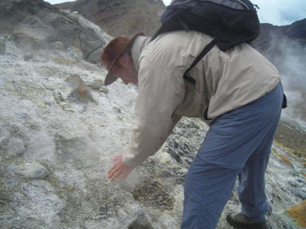 51. Il fait froid, mais je me rechauffe a la vapeur sortant d'un des trous dans le sol. Incroyable!