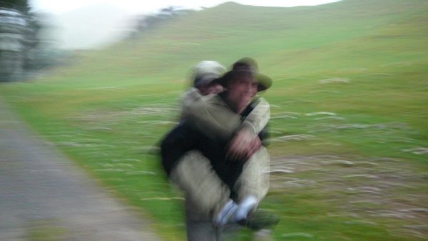 30. Sur le retour, Laurent a mal au pied. Devinez qui se dévoue pour le porter ...