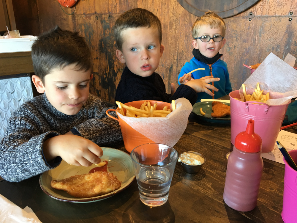 46. ... Les trois garçons choisissent tous le même menu: fish and chips!