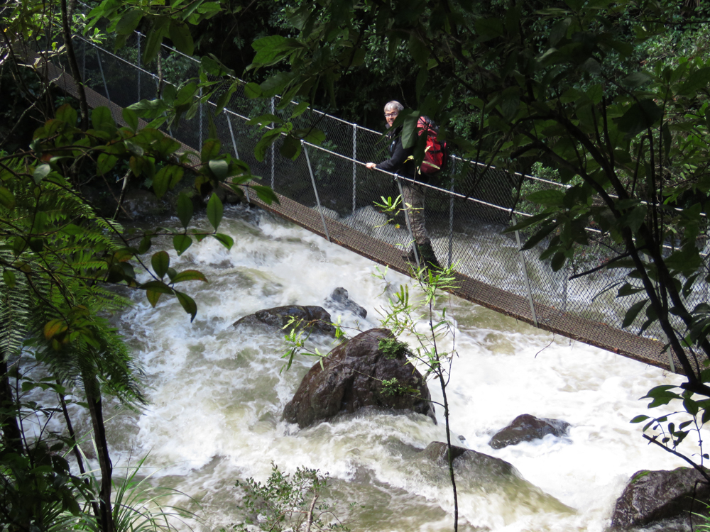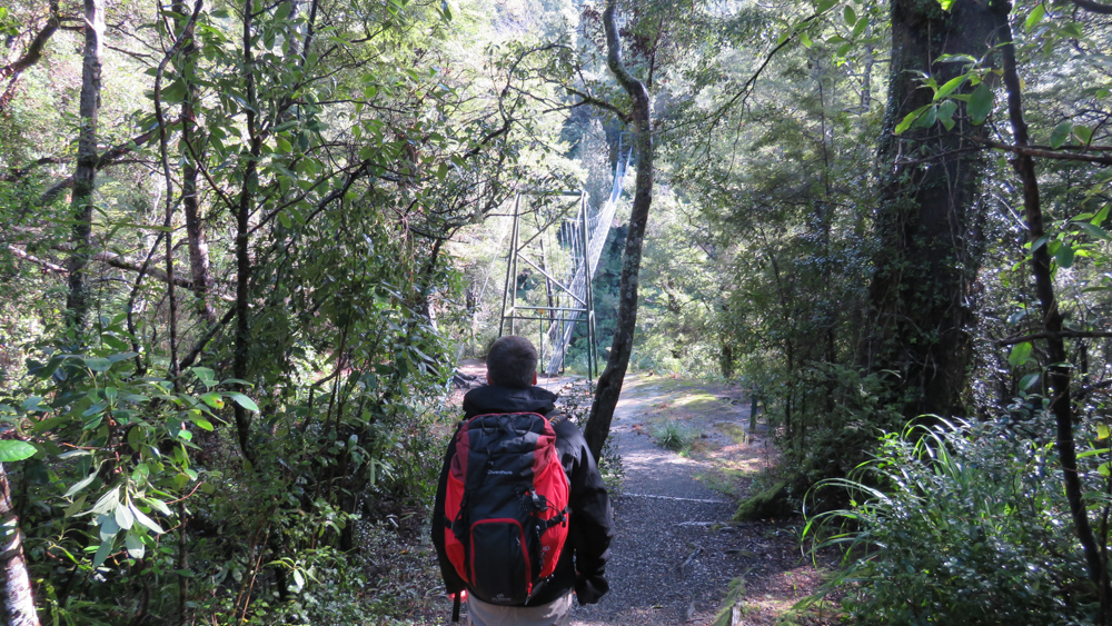 52. Mais c'est le bush du Tararua, et ça reste très joli. Ici, le premier pont suspendu. Il est très haut, très grand, et quand même très impressionnant.