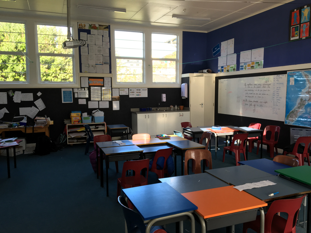 12. Devant la classe, la "cantine". Et oui, c'est le "point noir" de toutes les écoles kiwis: les enfants doivent ramener leur repas, bien souvent un sandwich.