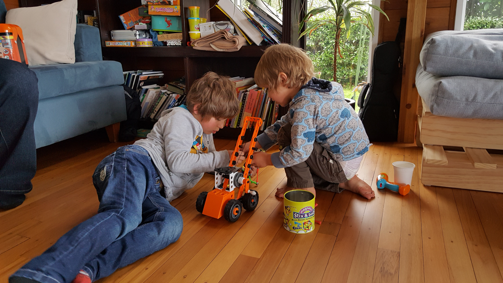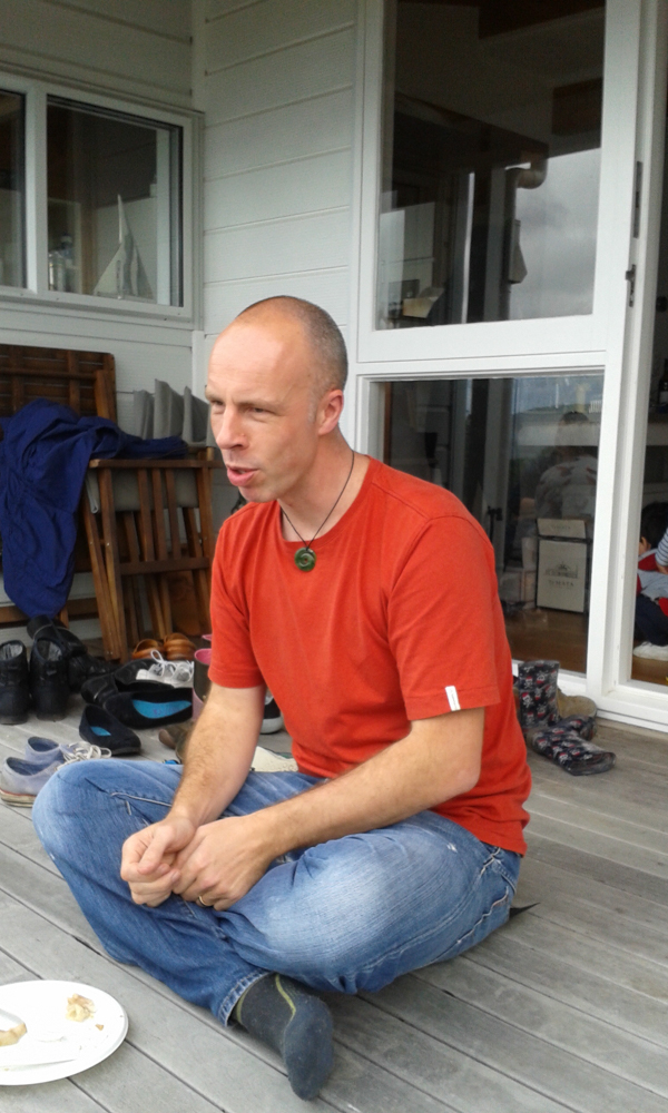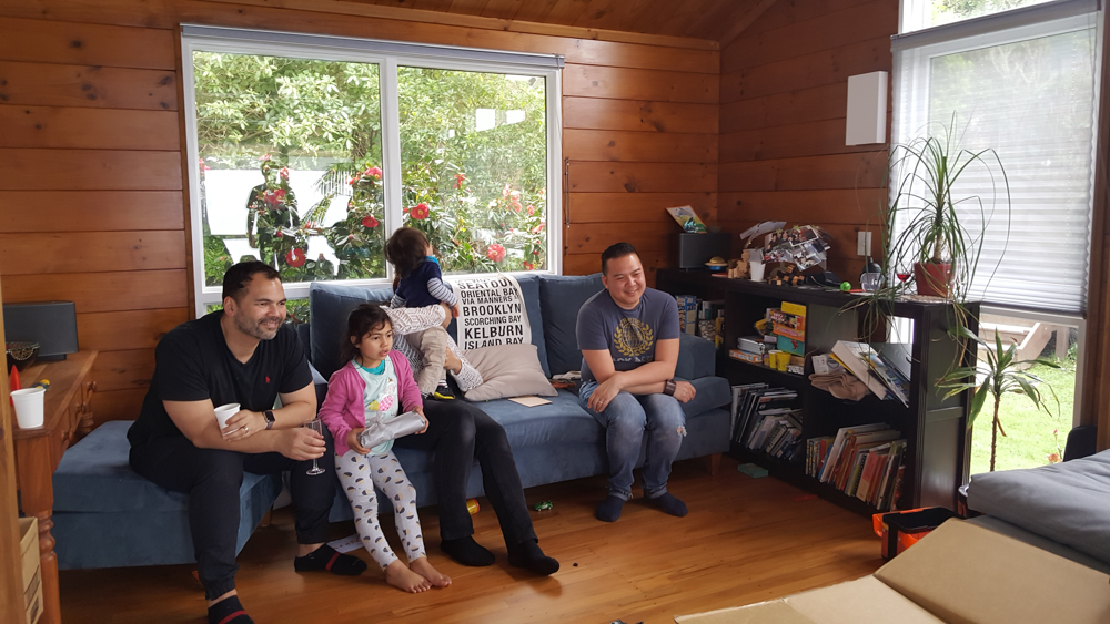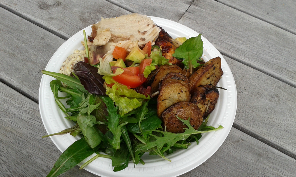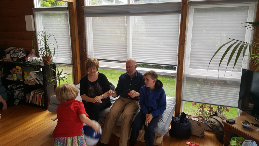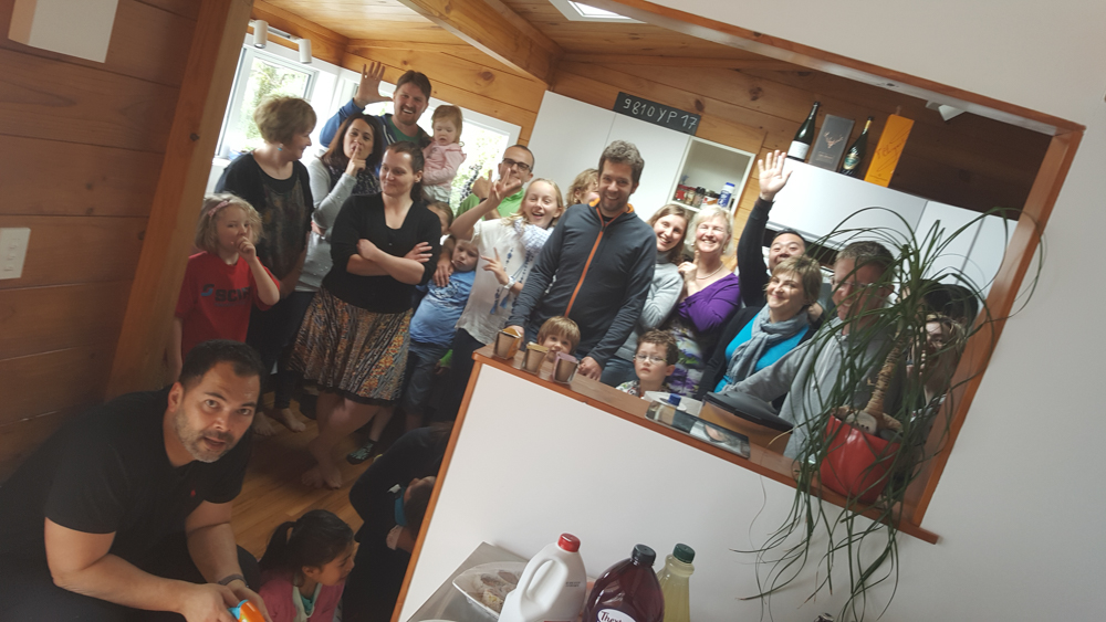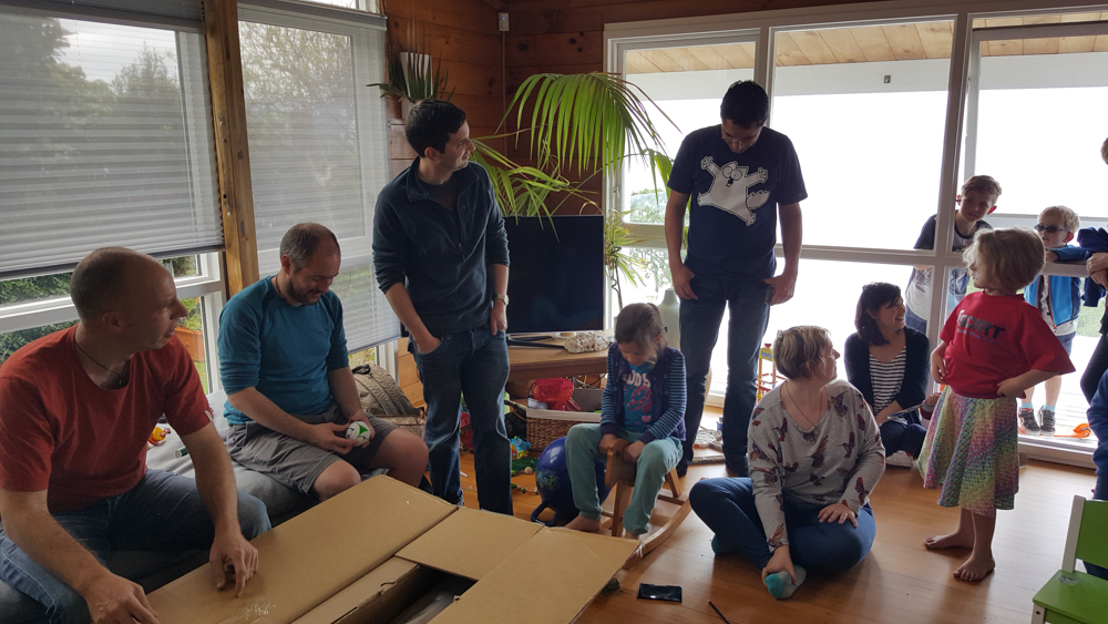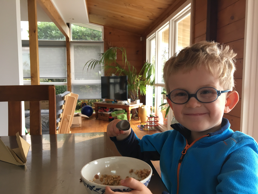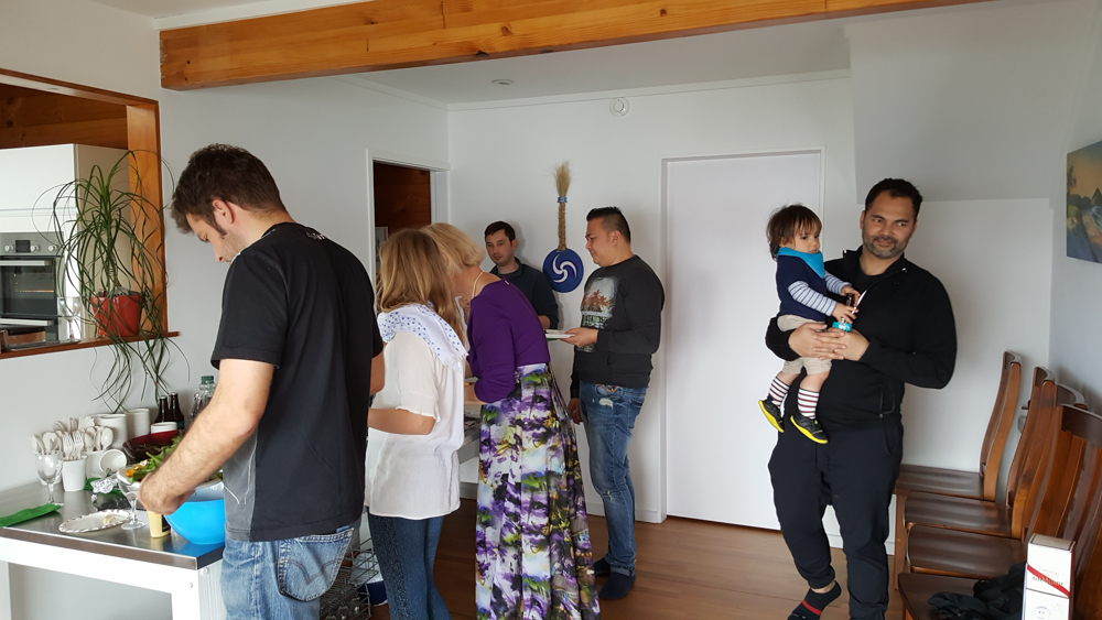 17. On n'a pas encore de grande table pour dehors (et les terrasses en bas sont en travaux), donc c'est à la bonne franquette, et ça convient à tout le monde.