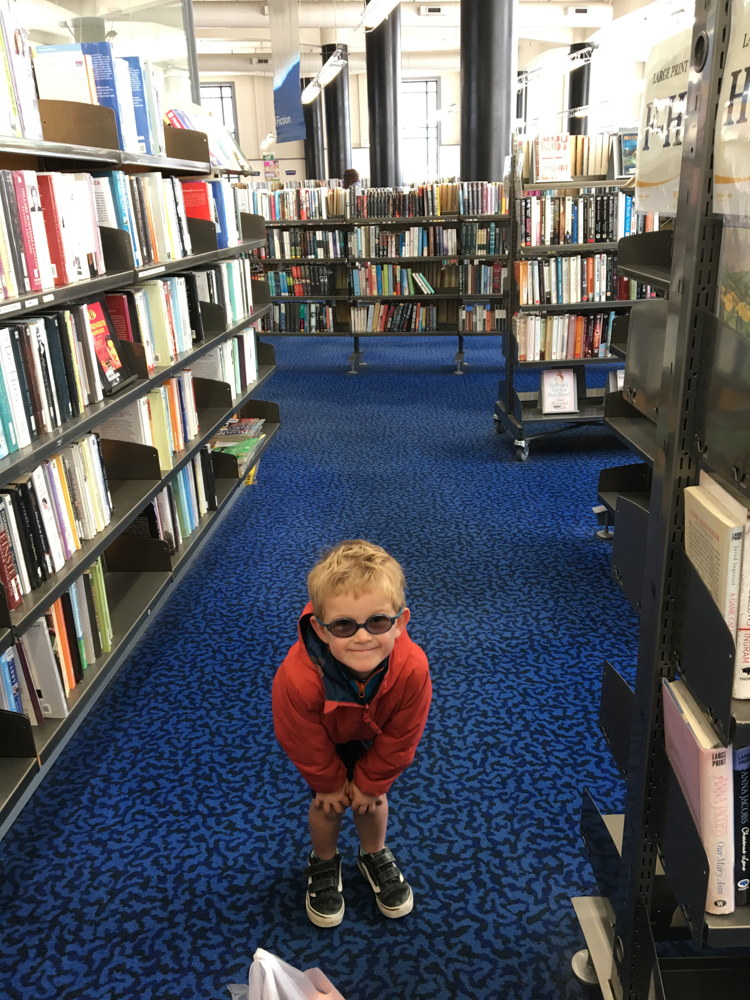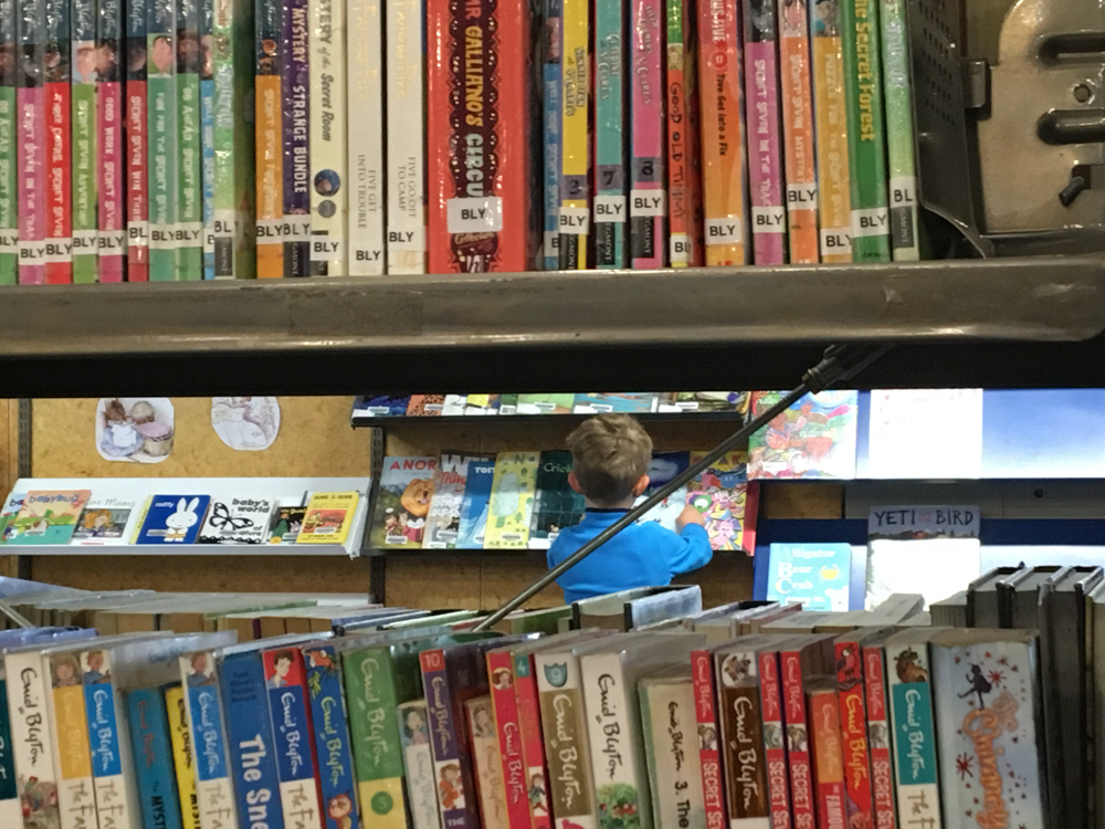 42. Il n'a jamais vu autant de livres d'un coup, et bien sur, est aimanté par la section enfants. Ca tombe bien, ils ont installé des canapés. Je m'installe, et lui lis 5 histoires!