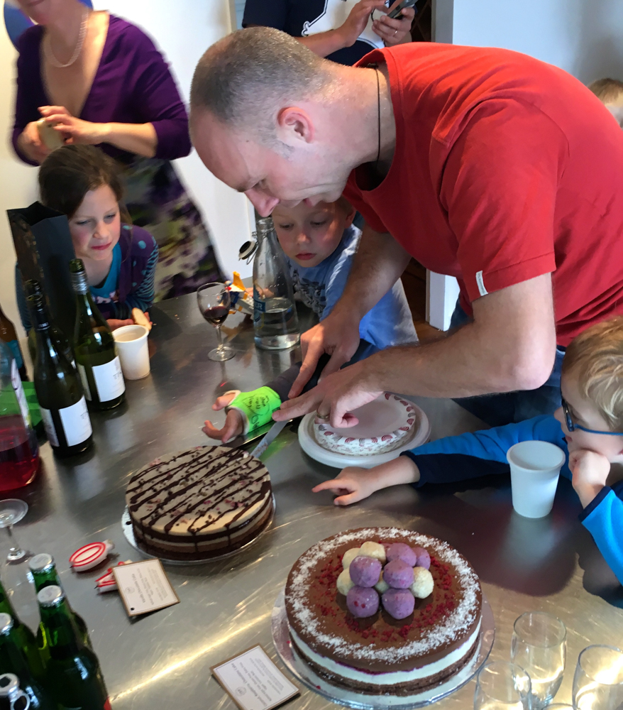 20. ... et bien sur, des gateaux et des bougies (mais pas 40, ouf!). Tout le monde chante Joyeux Anniversaire en anglais puis en français.