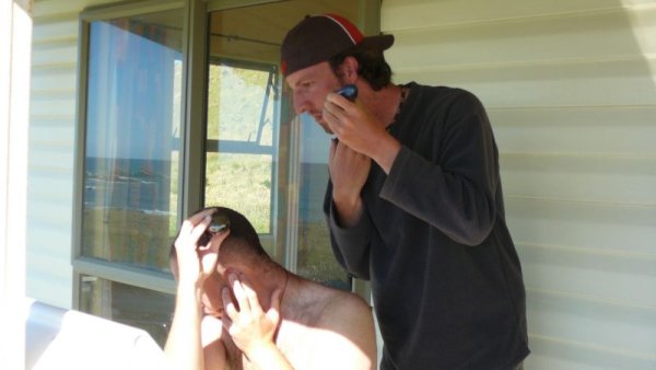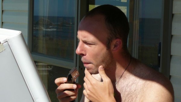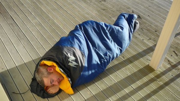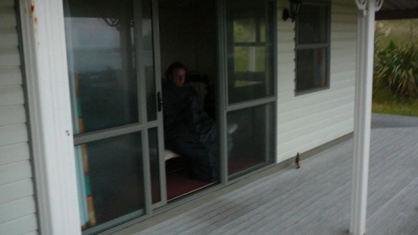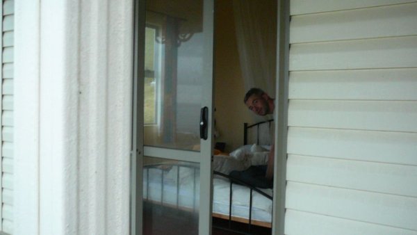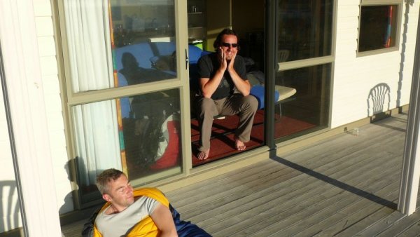 11. Samedi matin. Seb finit sa nuit sur la terrasse ....