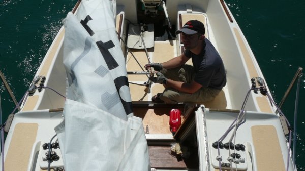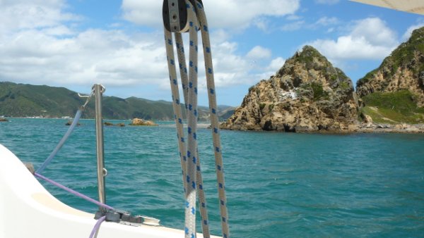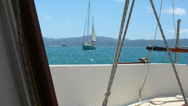 20. Plus tard, pour rentrer, on tirera quelques jolis bords et on rejoindra la marina en 1h30. Sur cette photo, la baie telle qu'on la voit depuis le balcon, avec au milieu, l'ile ou nous avons mouille plus tot ...