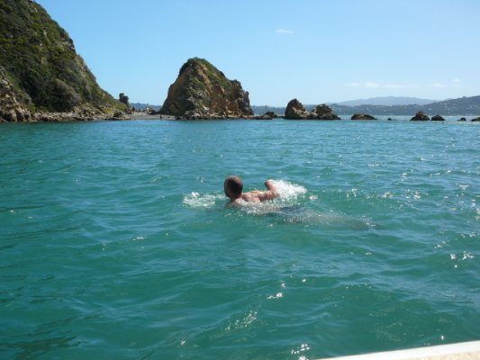 25. Super journee passee au soleil, et qui trouve sa conclusion avec un petite baignade sur une des plages de Seatoun.