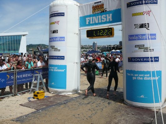 22. Puis les premiers nageurs rejoignent le bord. Le premier mettra 32 minutes, un temps completement incroyable
