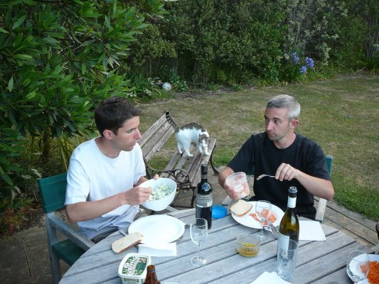 32. Et pour la premiere fois en deux ans, on dine dans le jardin, avec Chris et Aurore