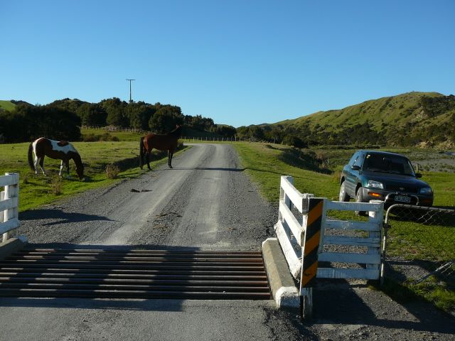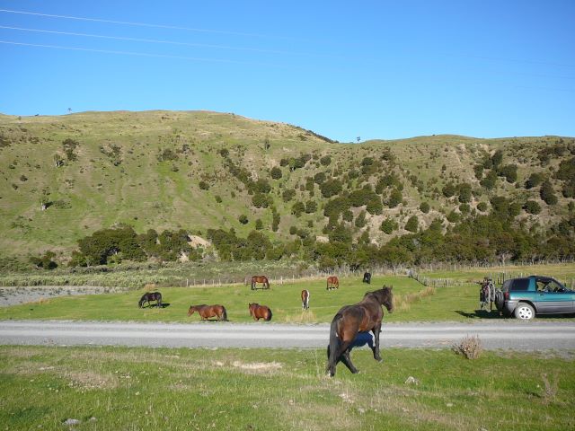 32. Arrivés à la voiture, nous constatons que des chevaux se sont invités autour