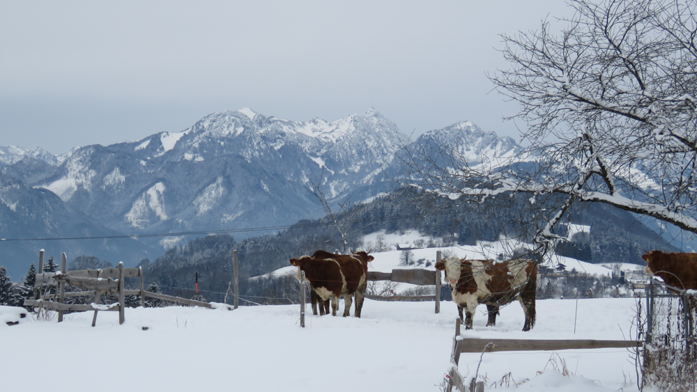Pour la première fois en 4 ans, nous sommes rentrés à Noël. L'occasion de prendre 5kgs chacun! Et de montrer à Adan ce qu'est un Noël blanc. Troisème partie de notre séjour: Visite à Kohlgrub.