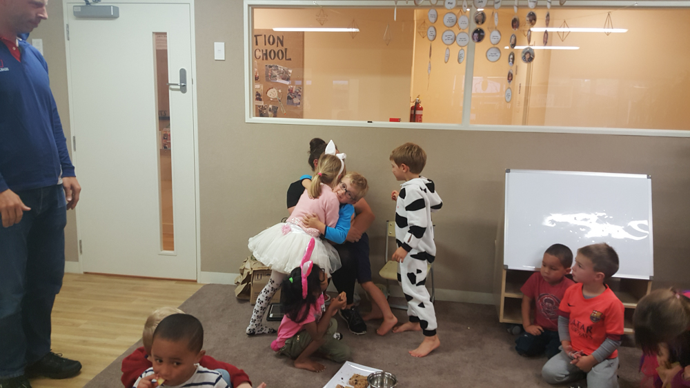 17. Michelle, présente près d'Adan depuis Tuatara Kids, embrasse bien fort Adan.