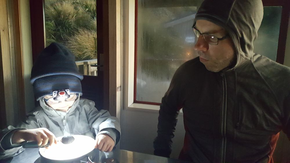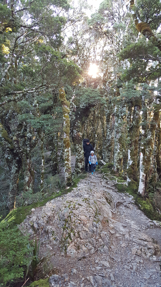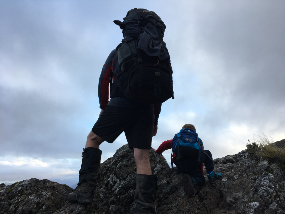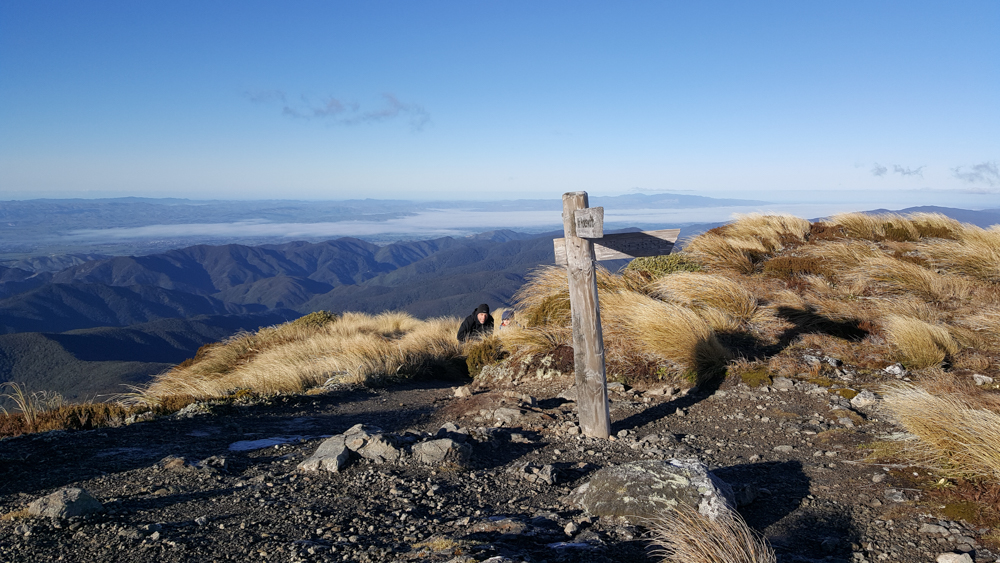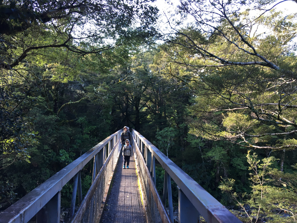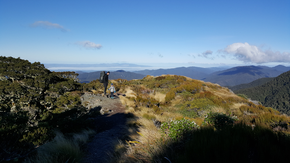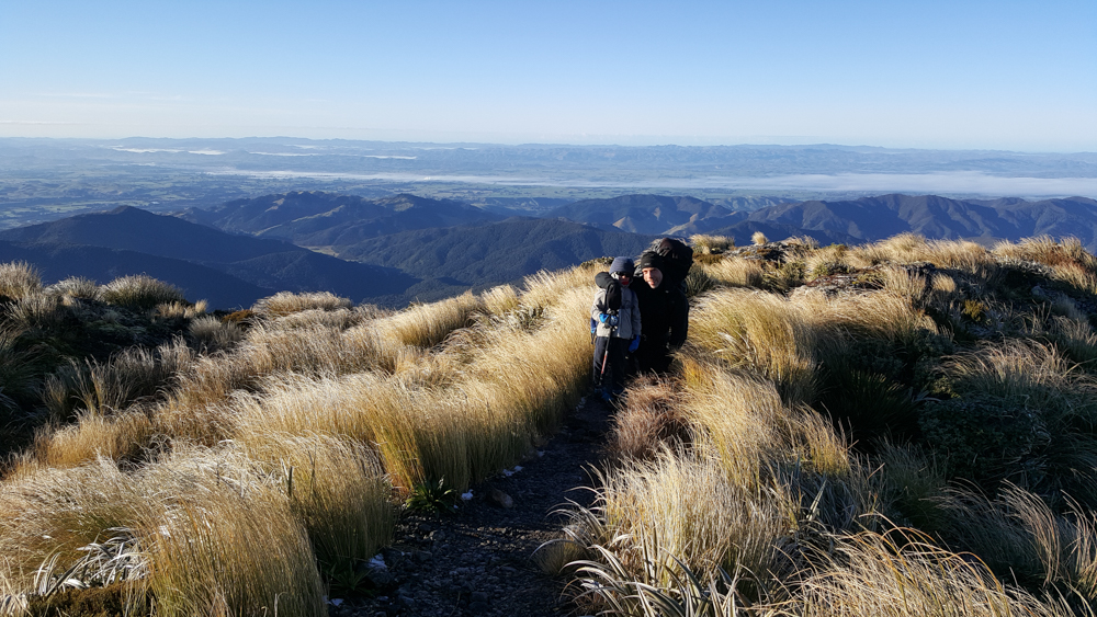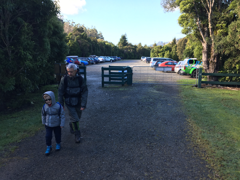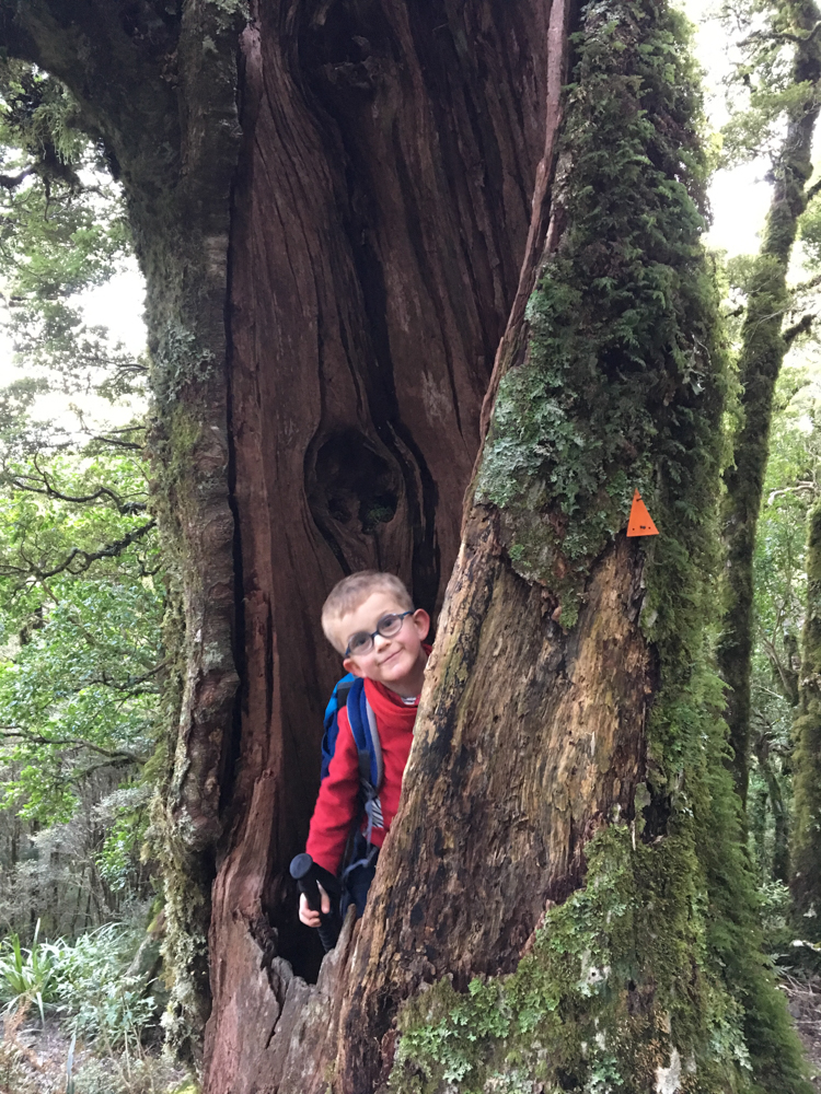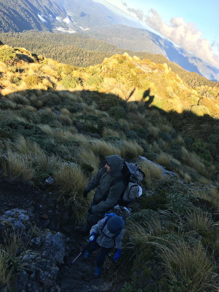Puisqu'Adan avait pu gravir sans faillir la Kapiti Island (500 mètres de dénivelé positif), il nous était venu l'idée que peut-être, il pourrait se mesurer à l'ascension du Mont Holdworth, en haut duquel (enfin presque du moins) se trouve la Powell Hut. Pour se rendre à ce refuge très connu, 4 heures de marche sont nécessaires, le long d'un chemin bien balisé, et qui grimpe, quand même, de 900 mètres en tout. Gros Papa espérait un peu de neige, et de neige il n'y avait point. Par contre, l'admiration sans borne qu'il avait pour Adan a encore été décuplée! Cet album a été réalisé sans trucage, et aucun enfant n'a été maltraité lors du tournage (sans rire)!
