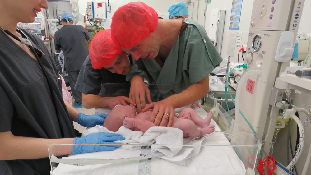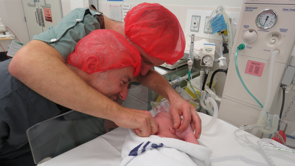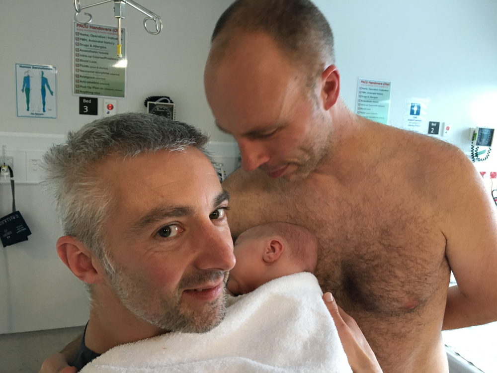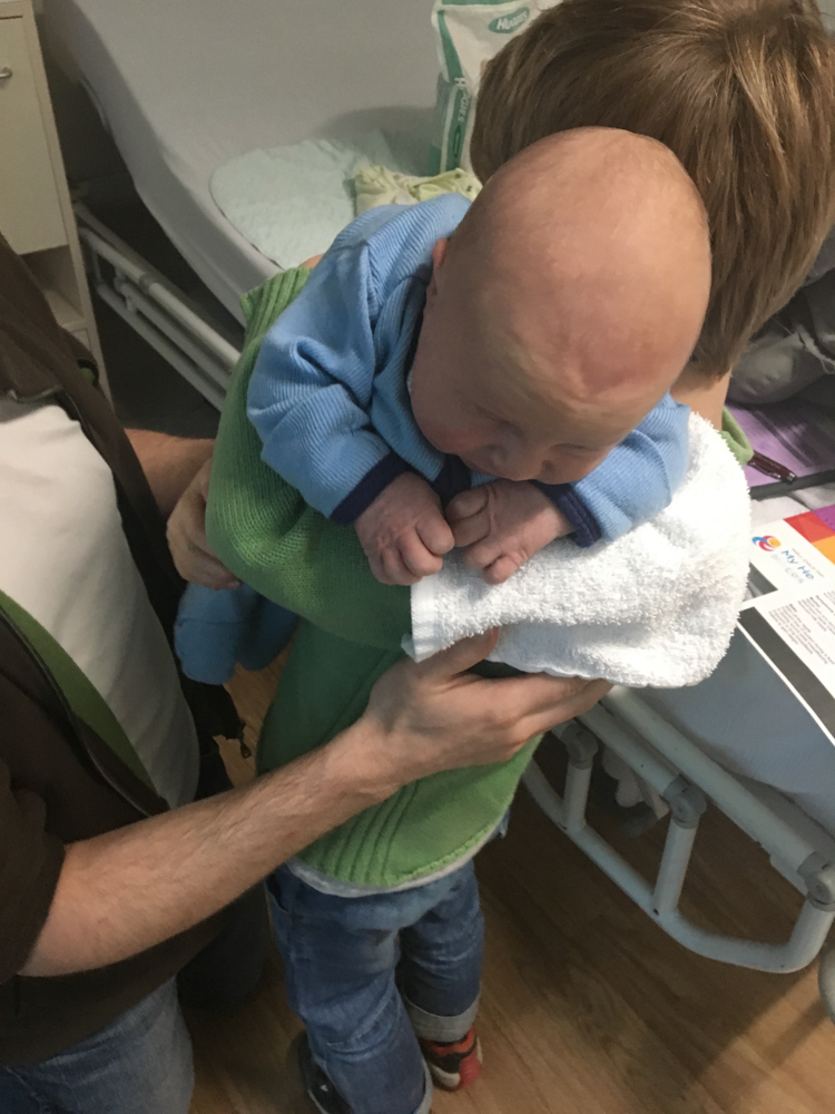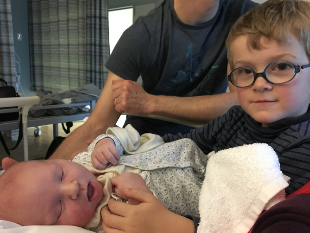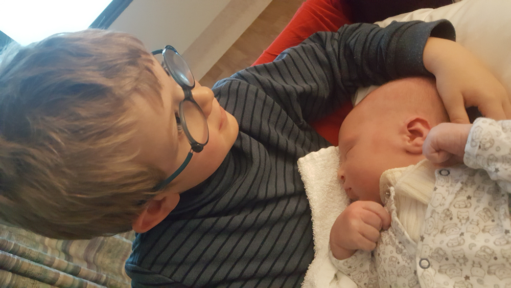 Le 13 août, à 11h50, naissait Cosmo, notre deuxième garçon. Grace à Melissa, nous avons complété notre famille, au cours d'un accouchement en plusieurs étapes: des cris dans la nuit a succédé un calme paisible, vers 4h du matin, quand la péridurale a été placée. Vers 11h, il a fallut se résoudre à une césarienne. Et pour cause: quand Cosmo a finalement poussé ses premiers cris, il pesait 5 kgs. Après les larmes de bonheur, nous avons repris notre souffle et nommé notre bébé. Melissa, la championne, a eu un peu chaud durant la césarienne, mais tout fut bien qui finit bien. Adan, quant à lui, fit connaissance de Cosmo vers 16h, et comme ses Papas, fut submergé de fierté!